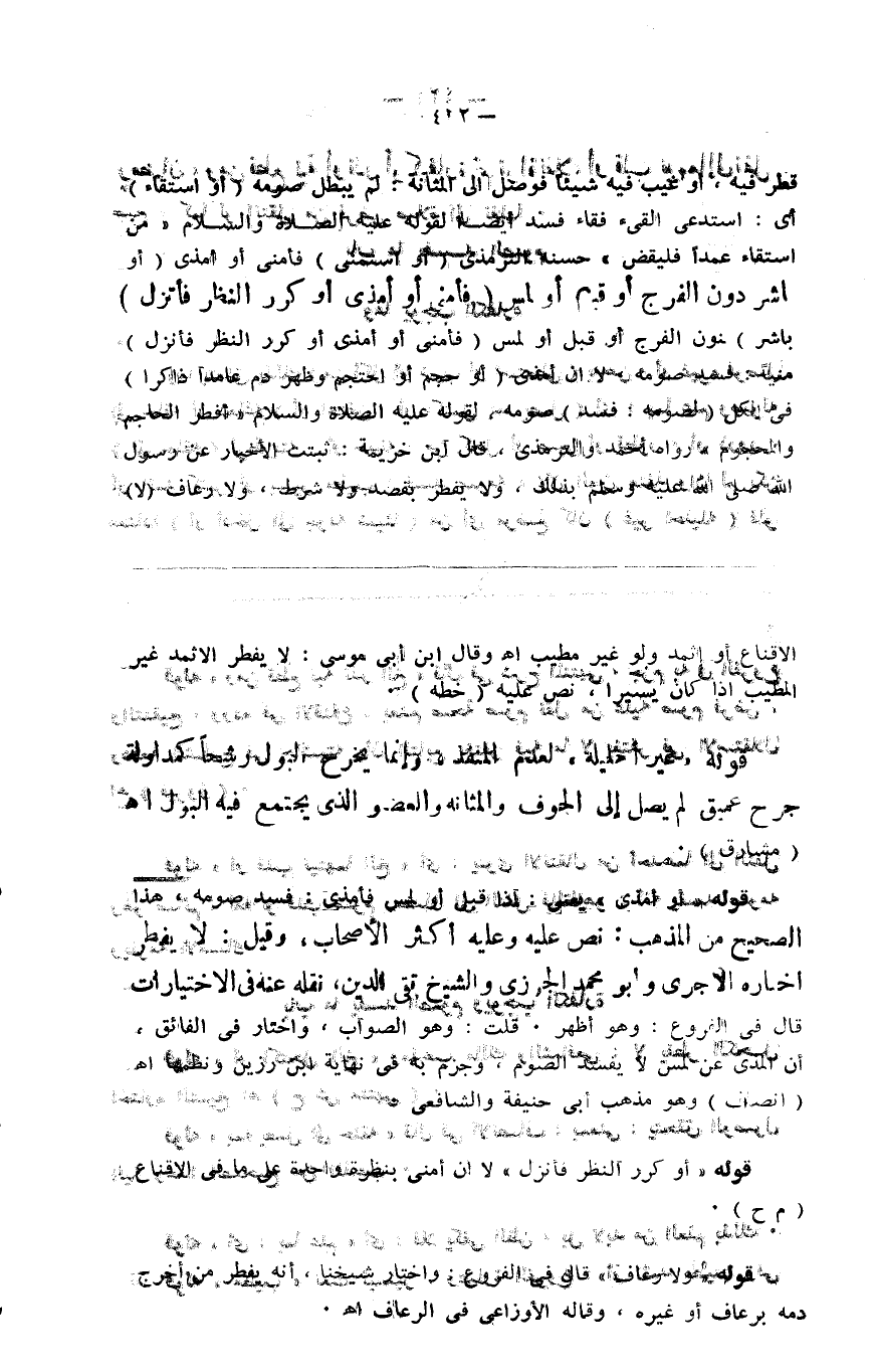 جوفه شيئا ) من أي موضع كان ( غير إحليله ) فلو قطر فيه أو غيب فيه شيئا فوصل إلى المثانة لم يبطل صومه ( أو استقاء ) أي استدعى القيىء فقاء فسد أيضا لقوله صلى الله عليه وسلم من استقاء عمدا فليقض حسنة الترمذي ( أو استمنى ) فأمنى أو أمذى ( أو باشر ) دون الفرج أو قبل أو لمس ( فأمنى أو أمذى أو كرر النظر فأنزل ) منيا فسد صومه لا إن أمذى ( أو حجم أو احتجم وظهر دم عامدا ذاكرا ) في الكل ( لصومه فسد ) صومه لقوله صلى الله عليه وسلم أفطر الحاجم والمحجوم رواه أحمد والترمذي قال ابن خزيمة ثبتت الأخبار عن رسول الله صلى الله عليه وسلم بذلك ولا يفطر بقصد ولا شرط ولا رعاف ( لا )