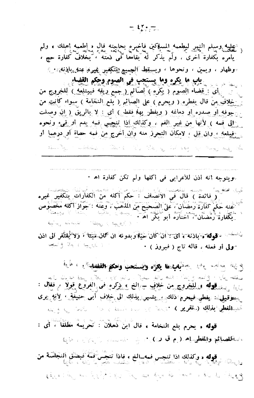 1 - (وحكم القضاء) أي قضاء الصوم (يكره) لصائم (جمع ريقه فيبتلعه) للخروج من خلاف من قال بفطره (ويحرم) على الصائم (بلع النخامة) سواء كانت من جوفه أو صدره أو دماغه (ويفطر بها فقط) أي لا بالريق (إن وصلت إلى فمه) لأنها من غير الفم وكذلك إذا تنجس فمه بدم أو قيء ونحوه فبلعه وإن قل