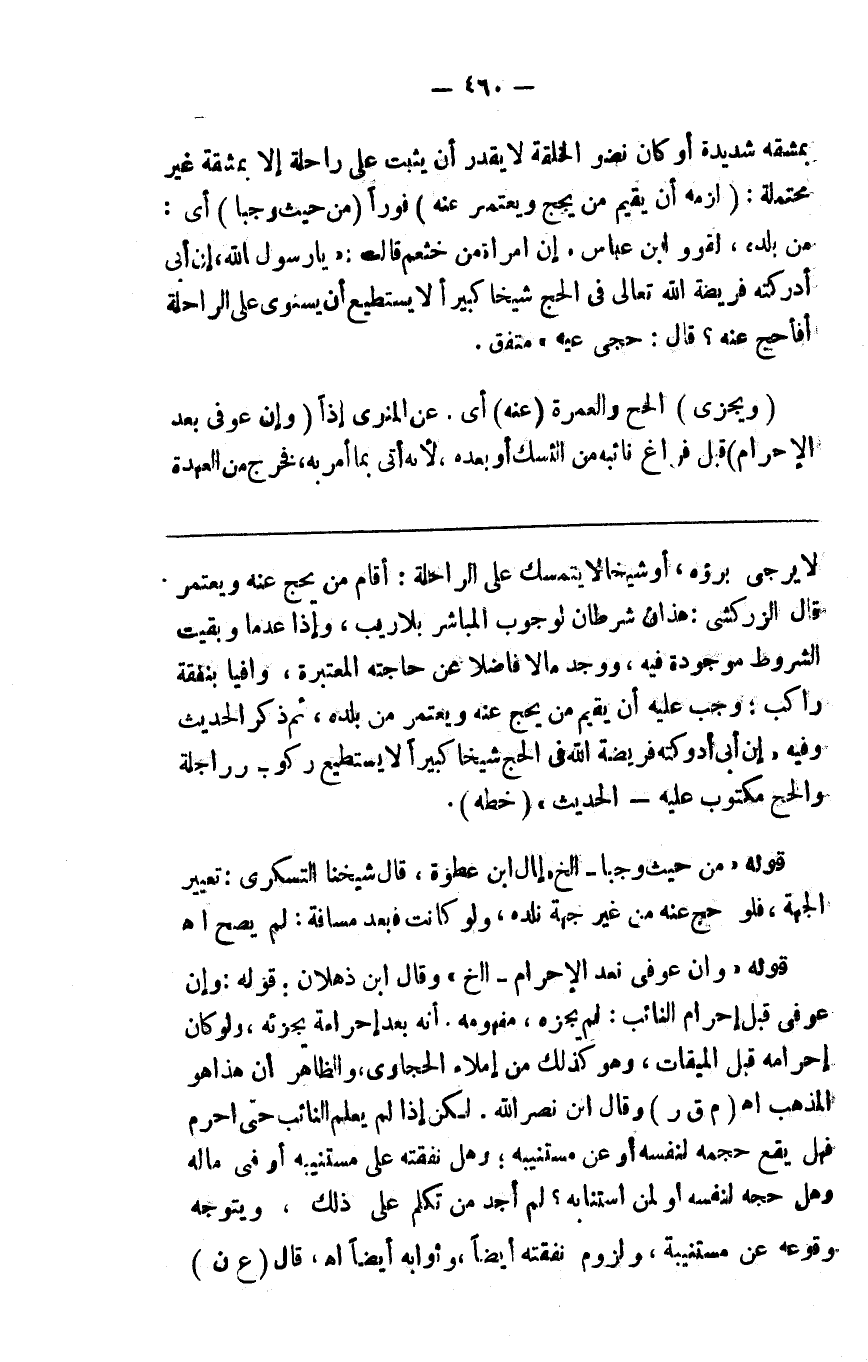 بمشقة شديدة أو كان نضو الخلقة لايقدر يثبت على راحلة إلا بمشقة غير محتملة ( لزمه أن يقيم من يحج ويعتمر عنه ) فورا ( من حيث وجبا ) أي من بلده لقول ابن عباس إن امرأة من خثعم قالت يا رسول الله إن أبي أدركته فريضة الله تعالى في الحج شيخا كبيرا لايستطيع أن يستوي على الراحلة أفأحج عنه قال حجي عنه متفق عليه ( ويجزئ ) الحج والعمرة ( عنه ) أي عن المنوب عنه إذا ( وإن عوفي بعد الإحرام ) قبل فراغ نائبه من النسك أو بعده لأنه أتى بما أمر به فخرج من العهدة