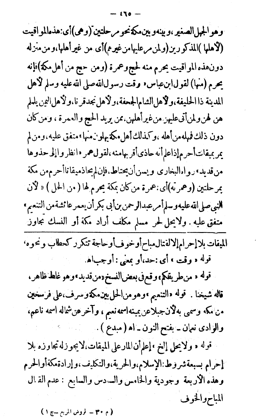 وهو الجبل الصغير وبينه وبين مكة نحو مرحلتين ( وهي ) أي هذه المواقيت ( لأهلها ) المذكورين ( ولمن مر عليها من غيرهم ) أي من غير أهلها ومن منزله دون المواقيت يحرم منه لحج وعمرة ( ومن حج من أهل مكة ف ) إنه يحرم ( منها ) لقول ابن عباس وقت رسول الله صلى الله وعليه وآله وسلم لأهل المدينة ذا الحليفة ولأهل الشام الجحفة ولأهل نجد قرن ولأهل اليمن يلملم هن لهن ولمن أتى عليهن من غير أهلهن ممن يريد الحج والعمرة ومن كان دون ذلك فمهله من أهله وكذلك أهل مكة يهلون منها متفق عليه ومن لم يمر بميقات أحرم إذا علم أنه حاذى أقربها منه لقول عمر انظروا إلى حذوها من قديد رواه البخارى ويسن أن يحتاط فإن لم يحاذ ميقاتا أحرم من مكة بمرحلتين ( وعمرته ) أي عمرة من كان بمكة يحرم لها ( من الحل ) لأن النبي صلى الله وعليه وآله وسلم أمر عبد الرحمن بن أبي بكر أن يعمر عائشة من التنعيم متفق عليه ولا يحل لحر مسلم مكلف أراد مكة أو النسك تجاوز الميقات بلا إحرام إلا