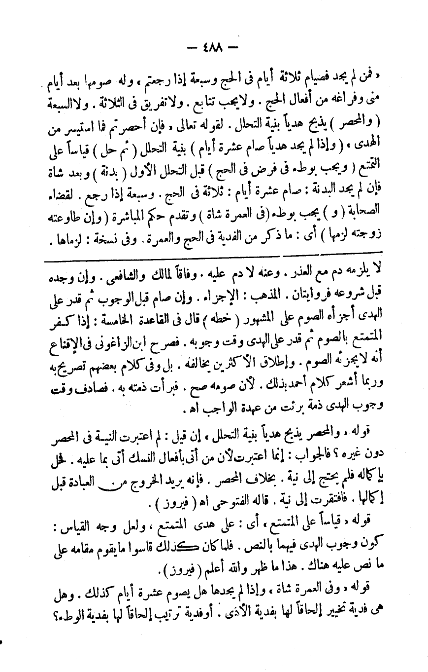 وله صومها بعد أيام منى وفراغه من أفعال الحج ولا يجب تتابع ولا تفريق في الثلاثة ولا السبعة ( والمحصر ) يذبح هديا بنية التحلل لقوله تعالى { فإن أحصرتم فما استيسر من الهدي } و ( إذا لم يجد هديا صام عشرة أيام ) بنية التحلل ( ثم حل ) قياسا على التمتع ( ويجب بوطء في فرج في الحج ) قبل التحلل الأول ( بدنة ) وبعده شاة فإن لم يجد البدنة صام عشرة أيام ثلاثة في الحج وسبعة إذا رجع لقضاء الصحابة ( و ) يجب بوطء ( في العمرة شاة ) وتقدم حكم المباشرة ( وإن طاوعته زوجة لزمها )