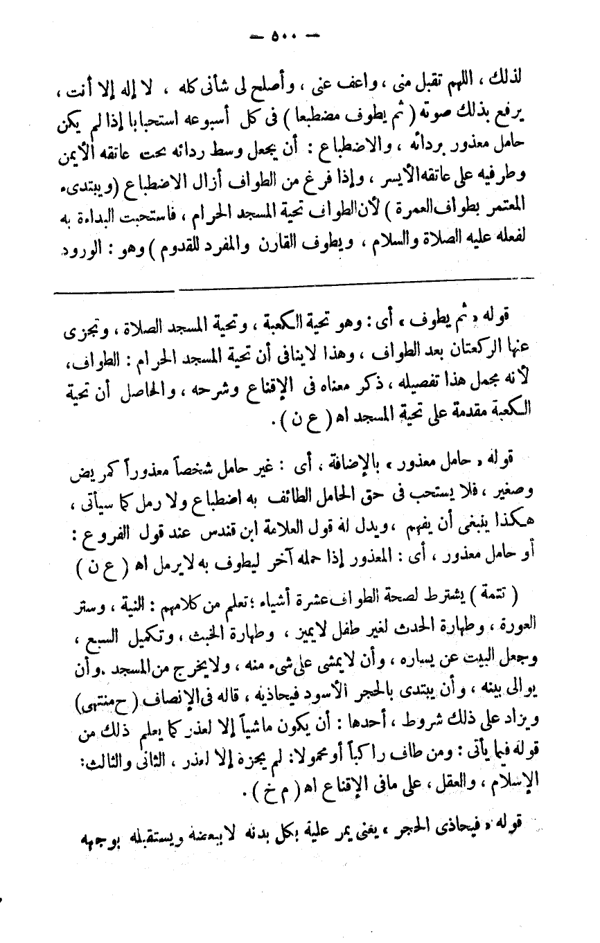وقد جئتك لذلك اللهم تقبل مني واعف عني وأصلح لي شأني كله لا إله إلا أنت يرفع بذلك صوته ( ثم يطوف مضطبعا ) في كل أسبوعه استحبابا إن لم يكن حامل معذور بردائه والاضطباع أن يجعل وسط ردائه تحت عاتقه الأيمن وطرفيه على عاتقه الأيسر وإذا فرغ من الطواف أزال الاضطباع ( يبتدئ المعتمر بطواف العمرة ) لأن الطواف تحية المسجد الحرام فاستحبت البدأة به لفعله صلى الله عليه وسلم ( و ) يطوف ( القارن والمفرد للقدوم ) وهو الورود