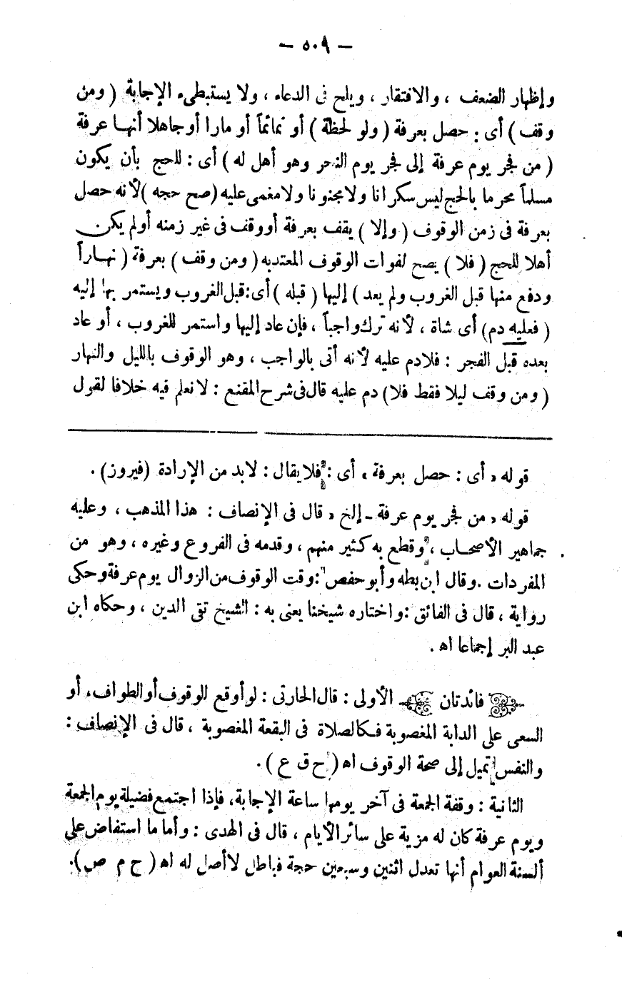 نورا ويسر لي أمري ويكثر الدعاء و الاستغفار والتضرع والخشوع وإظهار الضعف والافتقار ويلح في الدعاء ولا يستبطئ الإجابة ( ومن وقف ) أي حصل بعرفة ( ولو لحظة ) نائما أو مارا أو جاهلا أنها عرفة ( من فجر يوم عرفة ألى فجر يوم النحر وهو أهل له ) أي للحج بأن يكون مسلما محرما بالحج ليس سكرانا ولا مجنونا ولا مغمى عليه ( صح حجه ) لأنه حصل بعرفة في زمن الوقوف ( وإلا ) يقف بعرفة أو وقف في غير زمنه أو لم يكن أهلا للحج ( فلا ) يصح حجه بفوات الوقوف المعتد به ( ومن وقف ) بعرفة ( نهارا ودفع ) منها ( قبل الغروب ولم يعد ) إليها ( قبله ) أي قبل الغروب ويستمر بها إليه ( فعليه دم ) أي شاة لأنه ترك واجبا فإن عاد إليها أو استمر للغروب أو عاد بعده قبل الفجر فلا دم عليه لأنه أتى بالواجب وهو الوقوف بالليل والنهار ( ومن وقف ليلا فقط فلا )