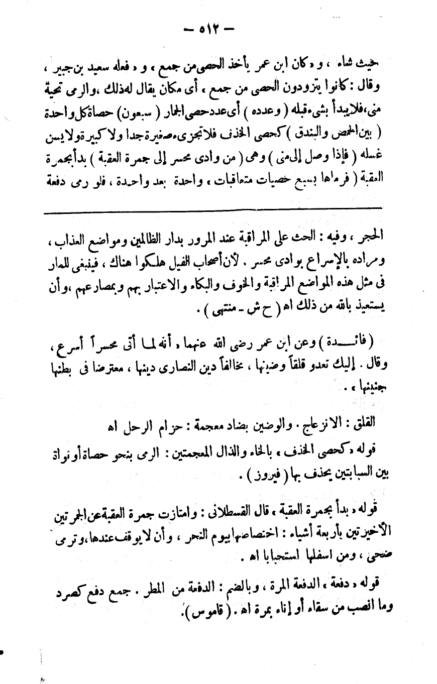 حرك قليلا كما ذكره جابر ( وأخذ الحصى ) أي حصى الجمار من حيث شاء وكان ابن عمر يأخذ الحصى من جمع وفعله سعيد بن جبير وقال كانوا يتزودون الحصى من جمع والرمي تحية منى فلا يبدأ قبله بشيء ( وعدده ) أي عدد حصى الجمار ( سبعون ) حصاة كل واحدة ( بين الحمص والبندق ) كحصا الخذف فلا تجزئ صغيرة جدا ولا كبيرة ولا يسن غسله ( فإذا وصل إلى منى وهي من وادي محسر إلى جمرة العقبة ) بدأ بجمرة العقبة ف ( رماها بسبع حصيات متعاقبات ) واحدة بعد واحدة فلو رمى دفعة