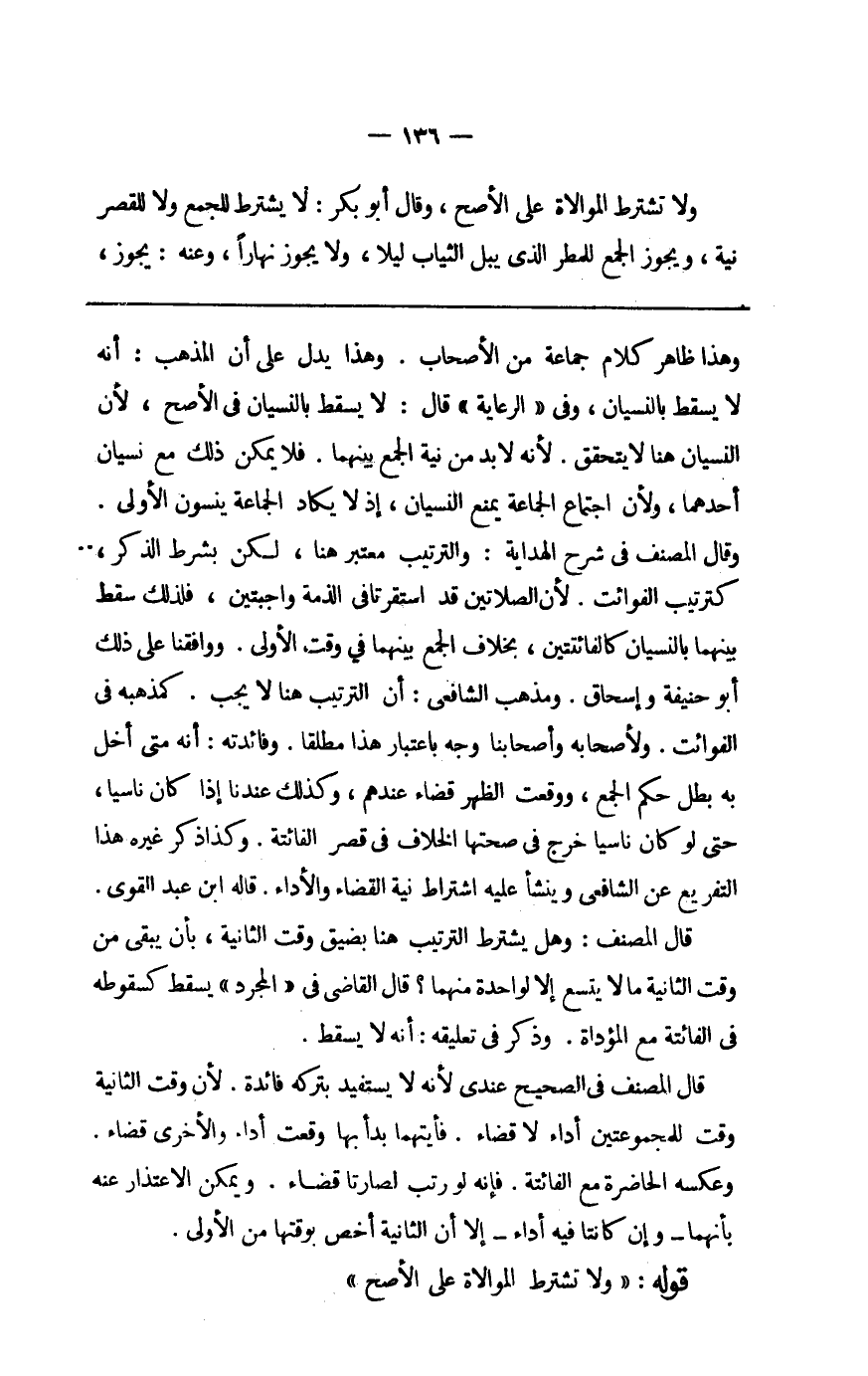 وَهَذَا ظَاهر كَلَام جمَاعَة من الْأَصْحَاب وَهَذَا يدل على أَن الْمَذْهَب أَنه لَا يسْقط بِالنِّسْيَانِ وَفِي الرِّعَايَة قَالَ لَا يسْقط بِالنِّسْيَانِ فِي الْأَصَح لِأَن النسْيَان هُنَا لَا يتَحَقَّق لِأَنَّهُ لَا بُد من نِيَّة الْجمع بَينهمَا فَلَا يُمكن ذَلِك مَعَ نِسْيَان أَحدهمَا وَلِأَن اجْتِمَاع الْجَمَاعَة يمْنَع النسْيَان إِذْ لَا يكَاد الْجَمَاعَة ينسون الأولى