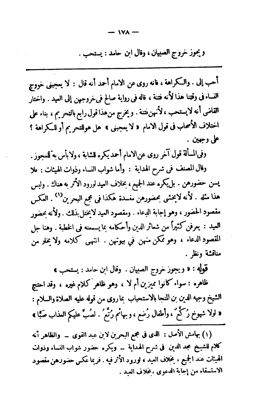 قَوْله وَيجوز خُرُوج الصّبيان وَقَالَ ابْن حَامِد يسْتَحبّ