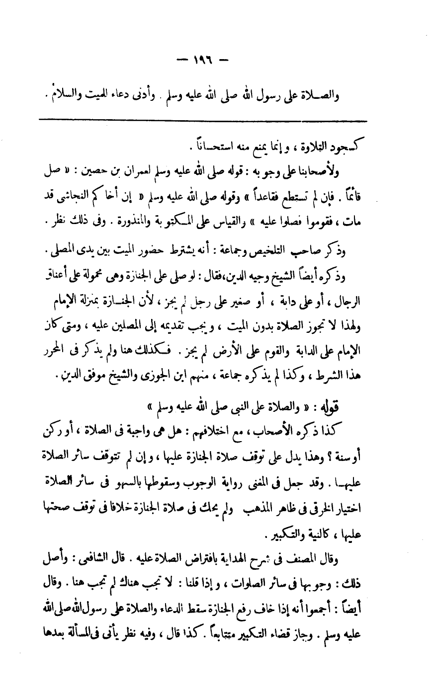 كَذَا ذكره الْأَصْحَاب مَعَ اخْتلَافهمْ هَل هِيَ وَاجِبَة فِي الصَّلَاة أوركن أَو سنة وَهَذَا يدل على توقف صَلَاة الْجِنَازَة عَلَيْهَا وَإِن لم تتَوَقَّف سَائِر الصَّلَاة عَلَيْهَا وَقد جعل فِي الْمُغنِي رِوَايَة الْوُجُوب وسقوطها بالسهو فِي سَائِر الصَّلَاة اخْتِيَار الْخرقِيّ فِي ظَاهر الْمَذْهَب وَلم يحك فِي صَلَاة الْجِنَازَة خلافًا فِي توقف صِحَّتهَا عَلَيْهَا كالنية وَالتَّكْبِير