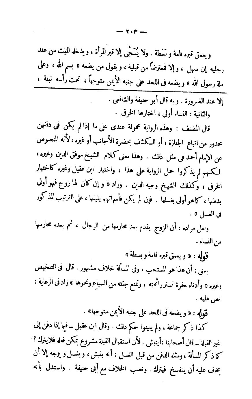 قَالَ المُصَنّف وَهَذِه الرِّوَايَة مَحْمُولَة عِنْدِي على مَا إِذا لم يكن فِي دفنهن مَحْذُور من اتِّبَاع الْجِنَازَة أَو الْكَشْف بِحَضْرَة الْأَجَانِب أَو غَيره لِأَنَّهُ الْمَنْصُوص عَن الإِمَام أَحْمد فِي مثل ذَلِك وَهَذَا معنى كَلَام الشَّيْخ موفق الدّين وَغَيره لكِنهمْ لم يذكرُوا حمل الرِّوَايَة على هَذَا وَاخْتِيَار ابْن عقيل وَغَيره كاختيار الْخرقِيّ وَكَذَلِكَ الشَّيْخ وجيه الدّين وَزَاد وَإِن كَانَ لَهَا زوج فَهُوَ أولى بدفنها كَمَا هُوَ أولى بغسلها فَإِن لم يكن فأمهاتهم يلينها على التَّرْتِيب الْمَذْكُور فِي الْغسْل