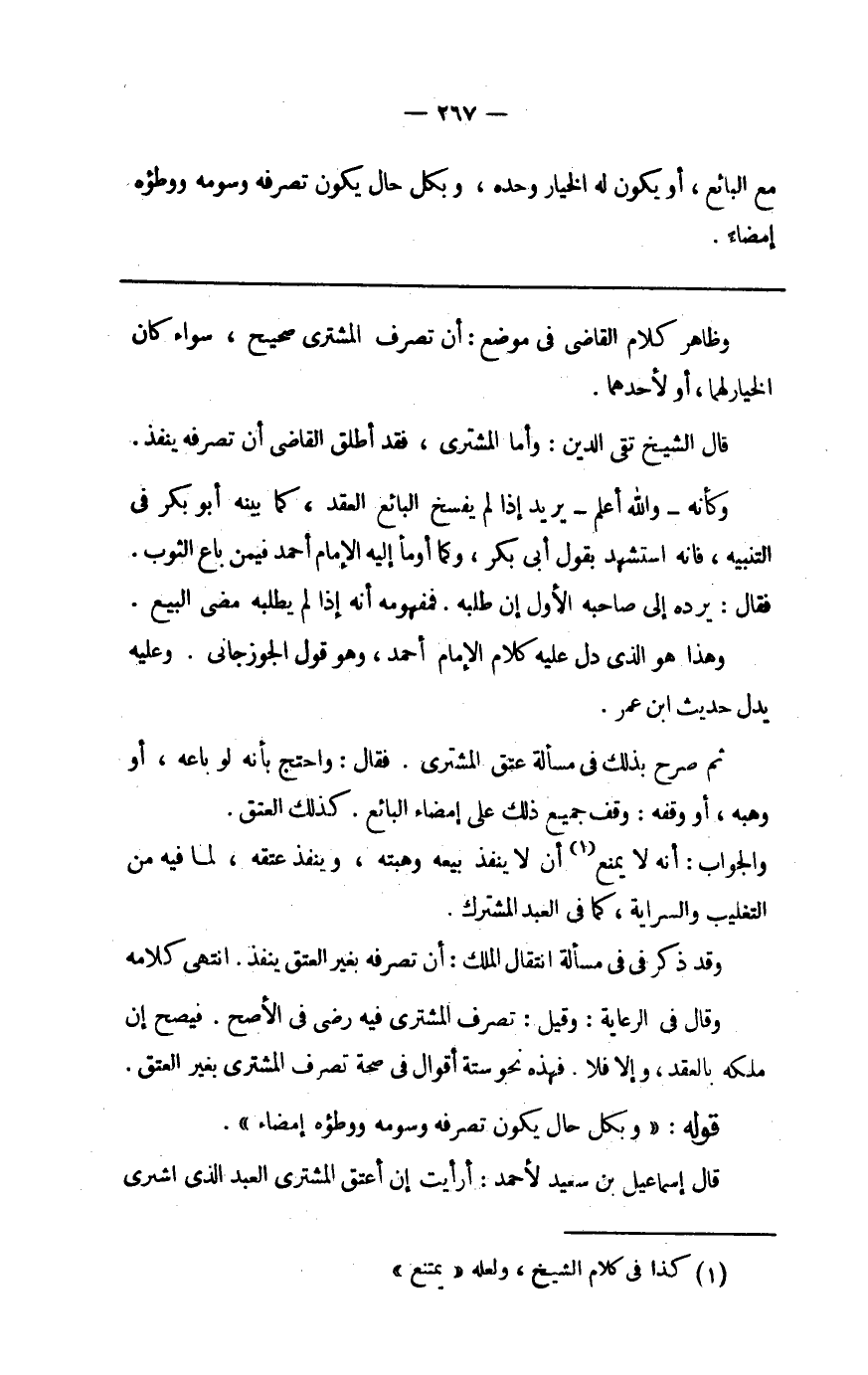 قَالَ الشَّيْخ تَقِيّ الدّين وَأما المُشْتَرِي فقد أطلق القَاضِي أَن تصرفه ينفذ