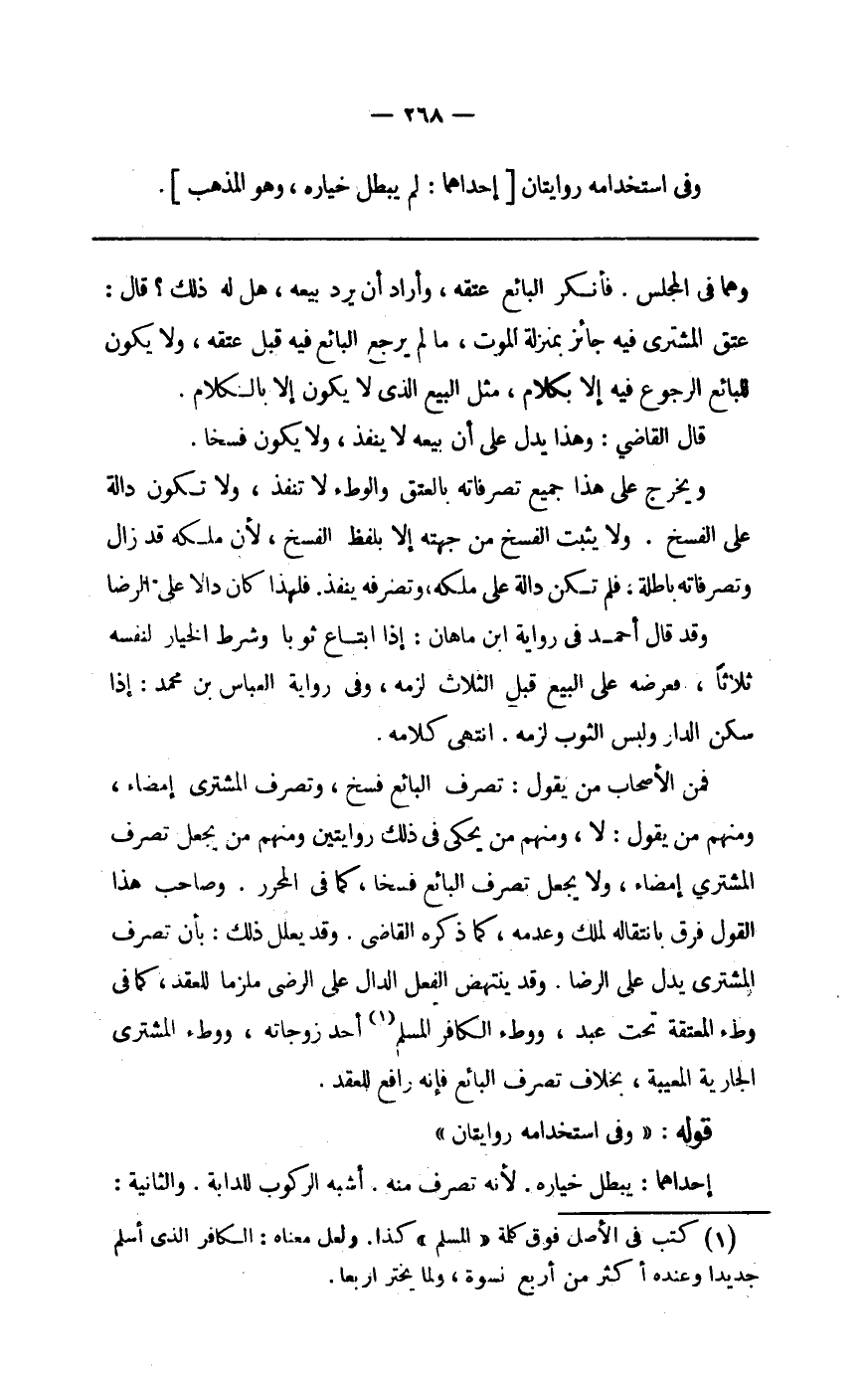 قَوْله وَفِي استخدامه رِوَايَتَانِ
