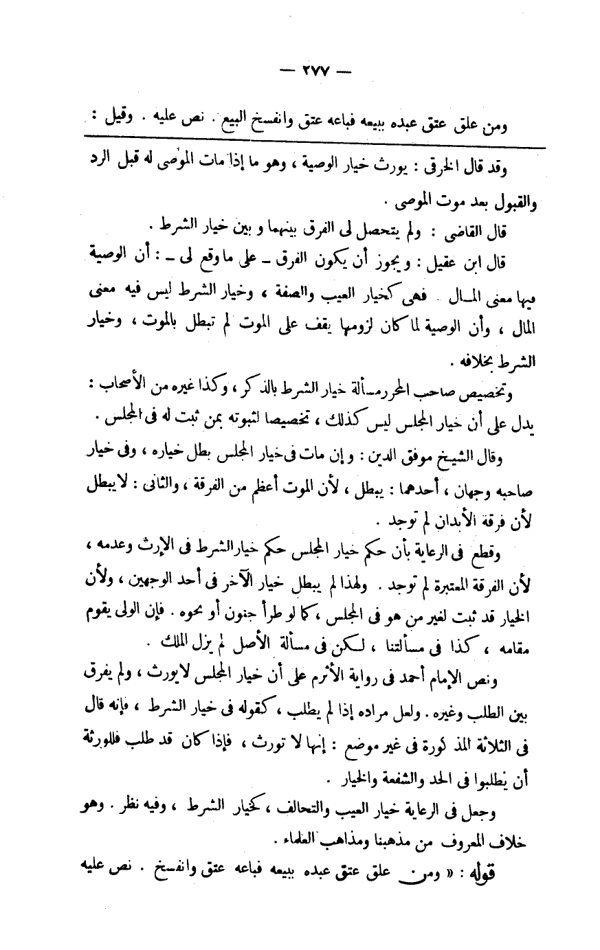 قَالَ ابْن عقيل وَيجوز أَن يكون الْفرق على مَا وَقع لي أَن الْوَصِيَّة فِيهَا معنى المَال فَهِيَ كَخِيَار الْعَيْب وَالصّفة وَخيَار الشَّرْط لَيْسَ فِيهِ معنى المَال وَأَن الْوَصِيَّة لما كَانَ لُزُومهَا يقف على الْمَوْت لم تبطل بِالْمَوْتِ وَخيَار الشَّرْط بِخِلَافِهِ