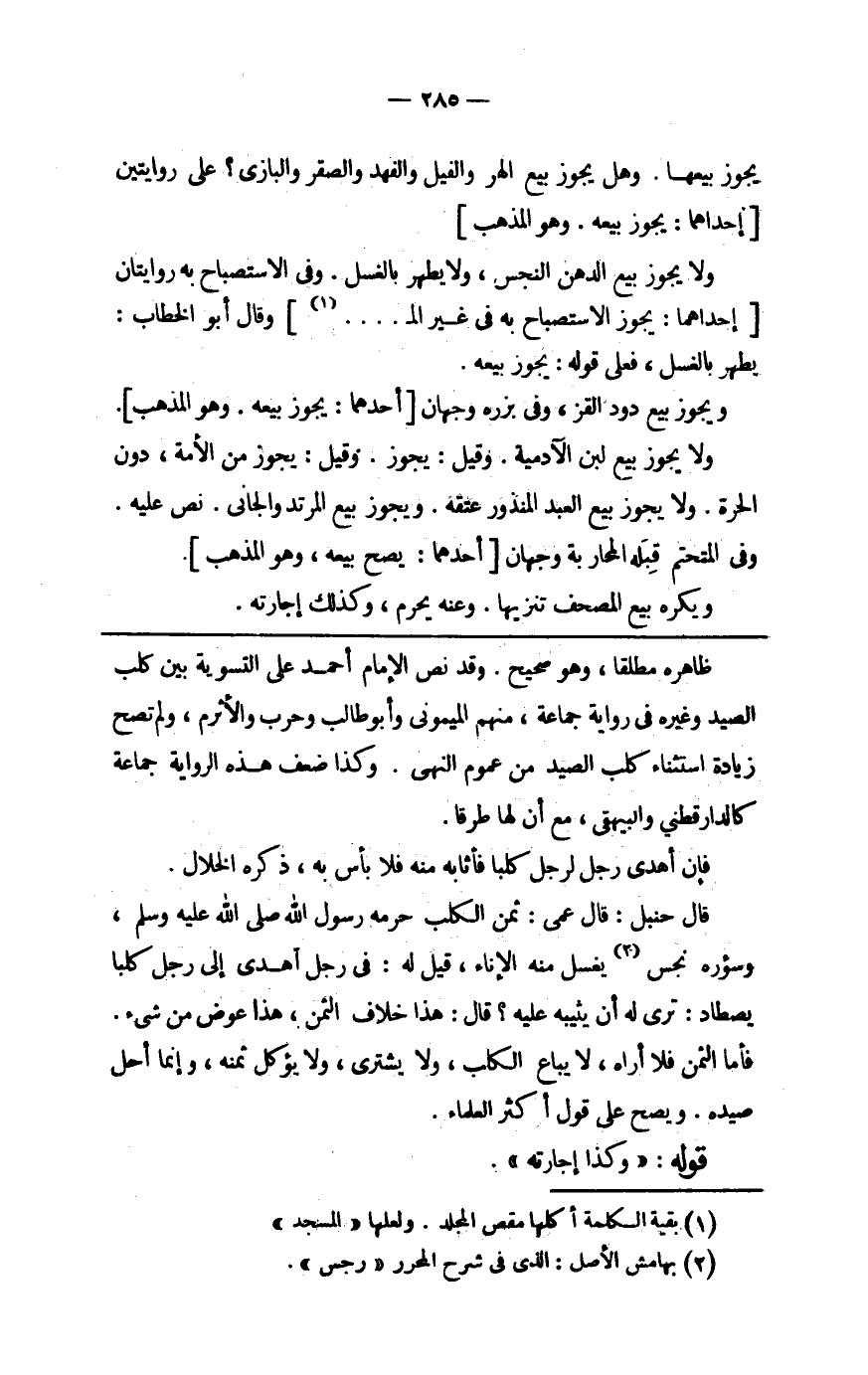 قَالَ حَنْبَل قَالَ عمي ثمن الْكَلْب حرمه رَسُول الله صلى الله عَلَيْهِ وَسلم وسؤره نجس يغسل مِنْهُ الْإِنَاء قيل لَهُ فِي رجل أهْدى إِلَى رجل كَلْبا يصطاد ترى لَهُ أَن يثيبه عَلَيْهِ قَالَ هَذَا خلاف الثّمن وَهَذَا عوض من شَيْء فَأَما الثّمن فَلَا أرَاهُ لَا يُبَاع الْكَلْب وَلَا يشترى وَلَا يُؤْكَل ثمنه وَإِنَّمَا أحل صَيْده وَيصِح على قَول أَكثر الْعلمَاء