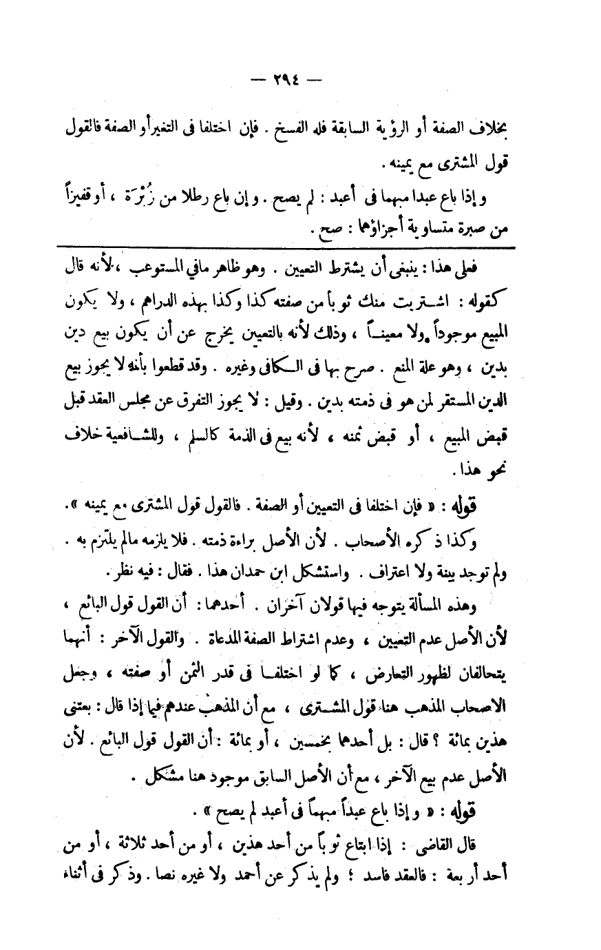 قَالَ القَاضِي إِذا ابْتَاعَ ثوبا من أحد هذَيْن أَو من أحد ثَلَاثَة أَو من أحد أَرْبَعَة فَالْعقد فَاسد وَلم يذكر عَن أَحْمد وَلَا غَيره نصا وَذكر فِي أثْنَاء