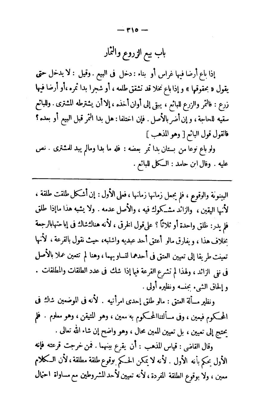 الْبَيْنُونَة والوقوع فَلم يَجْعَل زمانها زمانها فعلى الأول إِن أشكل طلقت طَلْقَة لِأَنَّهَا الْيَقِين وَالزَّائِد مَشْكُوك فِيهِ وَالْأَصْل عَدمه وَلَا يشبه هَذَا مَا إِذا طلق فَلم يدر طلق وَاحِد أَو ثَلَاثًا على قَول الْخرقِيّ لِأَنَّهُ هُنَاكَ شَاك فِي إباحتها بالرجعة بِخِلَاف هَذَا وَيُفَارق مالو أعتق أحد عبديه واشتبه حَيْثُ نقُول بِالْقُرْعَةِ لِأَنَّهَا تعيّنت طَرِيقا إِلَى تعْيين الْعتْق فِي أَحدهمَا لتساويهما وَهنا لم تتَعَيَّن عملا بِالْأَصْلِ فِي نفي الزَّائِد وَلِهَذَا لم تشرع الْقرعَة فِيمَا إِذا شكّ فِي عدد الطلقات والمطلقات وإلحاق الشَّيْء بِجِنْسِهِ وَنَظِيره أولى