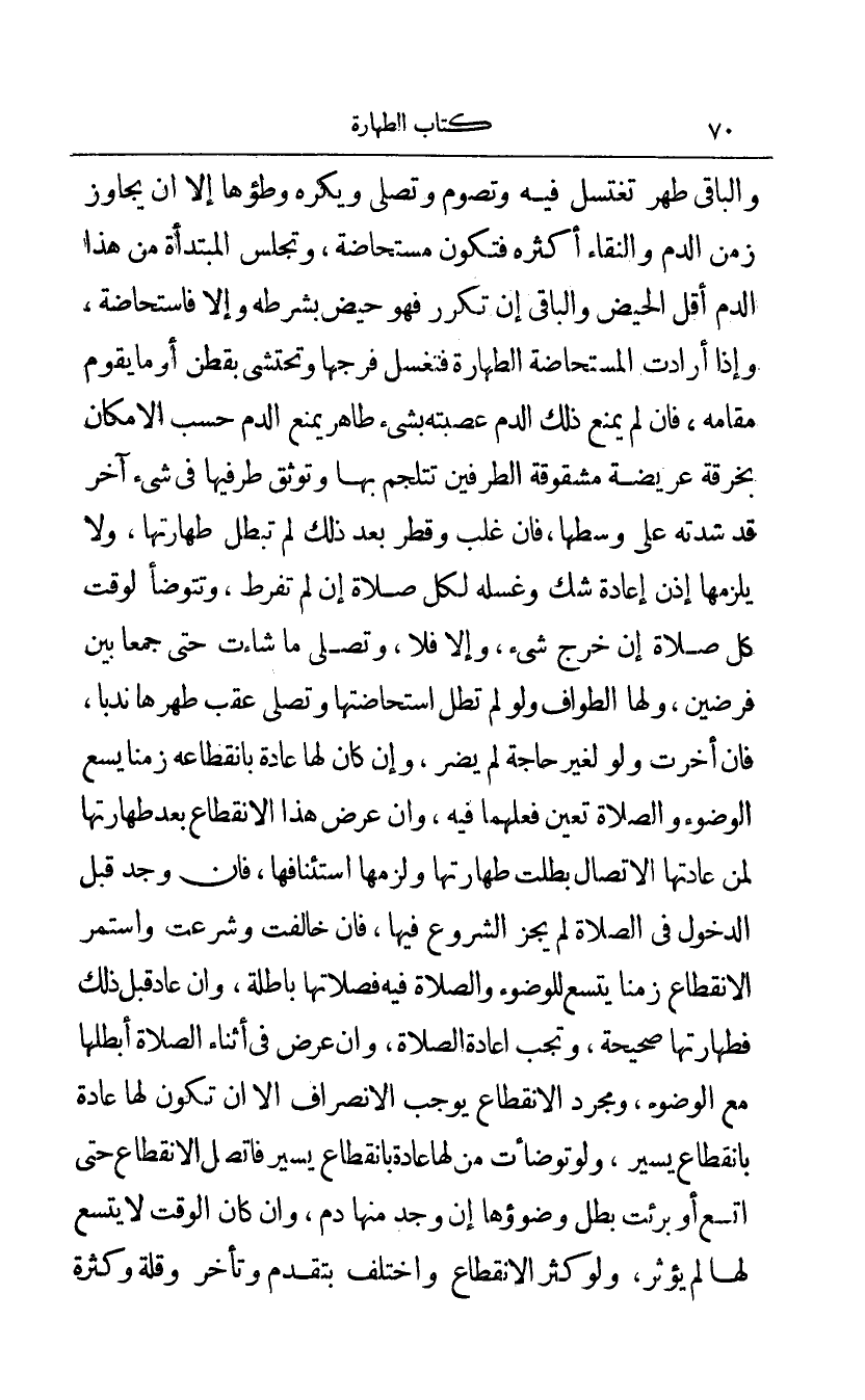 والباقي طهر تغتسل فيه وتصوم وتصلى ويكره وطؤها إلا أن يجاوز زمن الدم والنقاء أكثره فتكون مستحاضة وتجلس المبتدأة من هذا الدم أقل الحيض والباقي إن تكرر فهو حيض بشرطه وإلا فاستحاضة وإذا أرادت المستحاضة الطهارة فتغسل فرجها وتحتشي بقطن أو ما يقوم مقامه فإن لم يمنع ذلك الدم عصبته بشيء طاهر يمنع الدم حسب الإمكان بخرقة عريضة مشقوقة الطرفين تتلجم بها وتوثق طرفيها في شيء آخر قد شدته على وسطها فإن غلب وقطر بعد ذلك لم تبطل طهارتها ولا يلزمها إذن إعادة شك وغسله لكل صلاة إن لم تفرط وتتوضأ لوقت كل صلاة إن خرج شيء وإلا فلا وتصلى ما شاءت حتى جمعا بين فرضين ولها الطواف ولو لم تطل استحاضتها وتصلى عقب طهرها ندبا فإن أخرت لو لغير حاجة لم يضر وإن كان لها عادة بانقطاعه زمنا يسع الوضوء والصلاة تعين فعلهما فيه وإن عرض هذا الانقطاع بعد طهارتها لمن عادتها الاتصال بطلت طهارتها ولزمها استئنافها فإن وجد قبل الدخول في الصلاة لم يجز الشروع إليها فإن خالفت وشرعت واستمر الانقطاع زمنا يتسع للوضوء والصلاة فيه فصلاتها باطلة وإن عاد قبل ذلك فطهارتها صحيحة وتجب إعادة الصلاة وإن عرض في أثناء الصلاة أبطلها مع الوضوء ومجرد الانقطاع يوجب الانصراف إلا أن تكون لها عادة بانقطاع يسير ولو توضأت من لها عادة بانقطاع يسير فاتصل الانقطاع حتى اتسع أو برئت بطل وضوؤها إن وجد منها دم وإن كان الوقت لا يتسع لها لم يؤثر ولو كثر الانقطاع واختلف بتقدم وتأخر وقلة وكثرة
