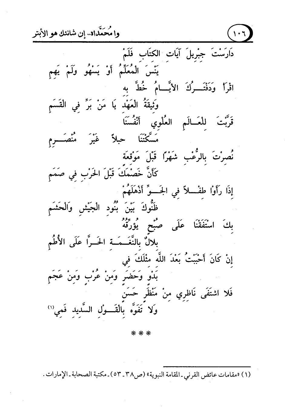 (¬1) "مقامات عائض القرني - المقامة النبوية" (ص 38 - 53) - مكتبة الصحابة - الإمارات.