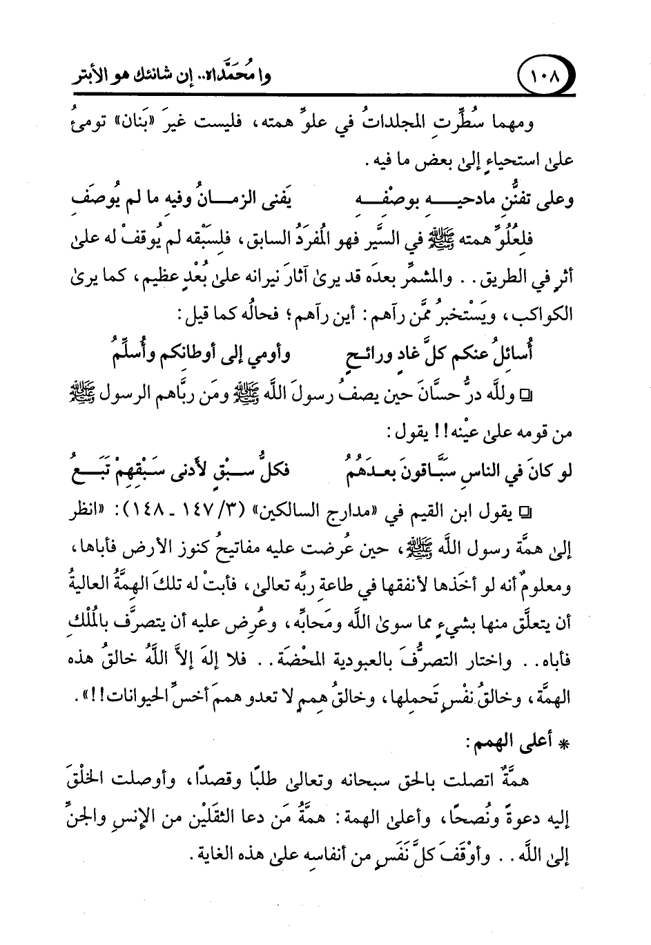 همَّةٌ اتصلت بالحق سبحانه وتعالى طلبًا وقصدًا، وأوصلت الخلْقَ إليه دعوةً ونُصحًا، وأعلى الهمة: همَّةُ مَن دعا الثقَليْن من الإنسِ والجنِّ إلى الله .. وأوْقَفَ كلَّ نَفَسٍ من أنفاسِه على هذه الغاية.