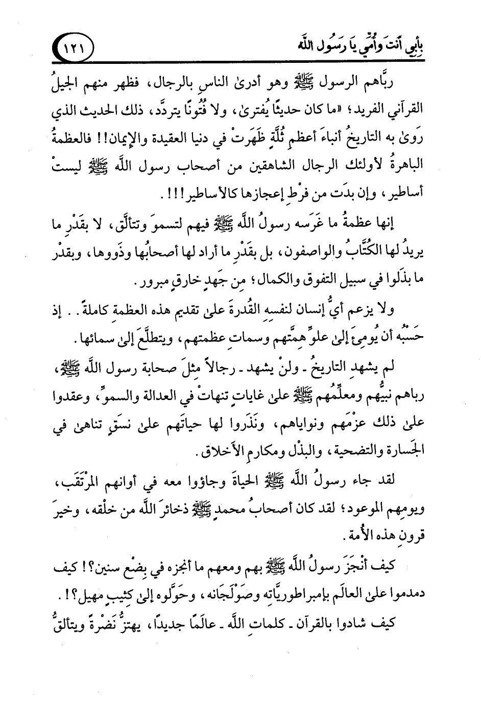 ربَّاهم الرسول - صلى الله عليه وسلم - وهو أدرى الناسِ بالرجال، فظهر منهم الجيلُ القرآني الفريد؛ "ما كان حديثًا يُفترى، ولا فُتُونًا يتردَّد، ذلك الحديث الذي رَوى به التاريخُ أنباءَ أعظم ثُلَّةٍ ظَهَرتْ في دنيا العقيدة والإيمان!! فالعظمةُ الباهرةُ لأولئك الرجال الشاهقين من أصحاب رسول الله - صلى الله عليه وسلم - ليستْ أساطير، وإن بدَت من فرْطِ إعجازها كالأساطير!!!.