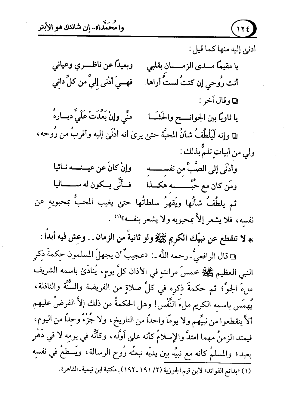 * لا تنقطع عن نبيِّك الكرِيم - صلى الله عليه وسلم - ولو ثانيةً من الزمان .. وعِش فيه أبدًا: