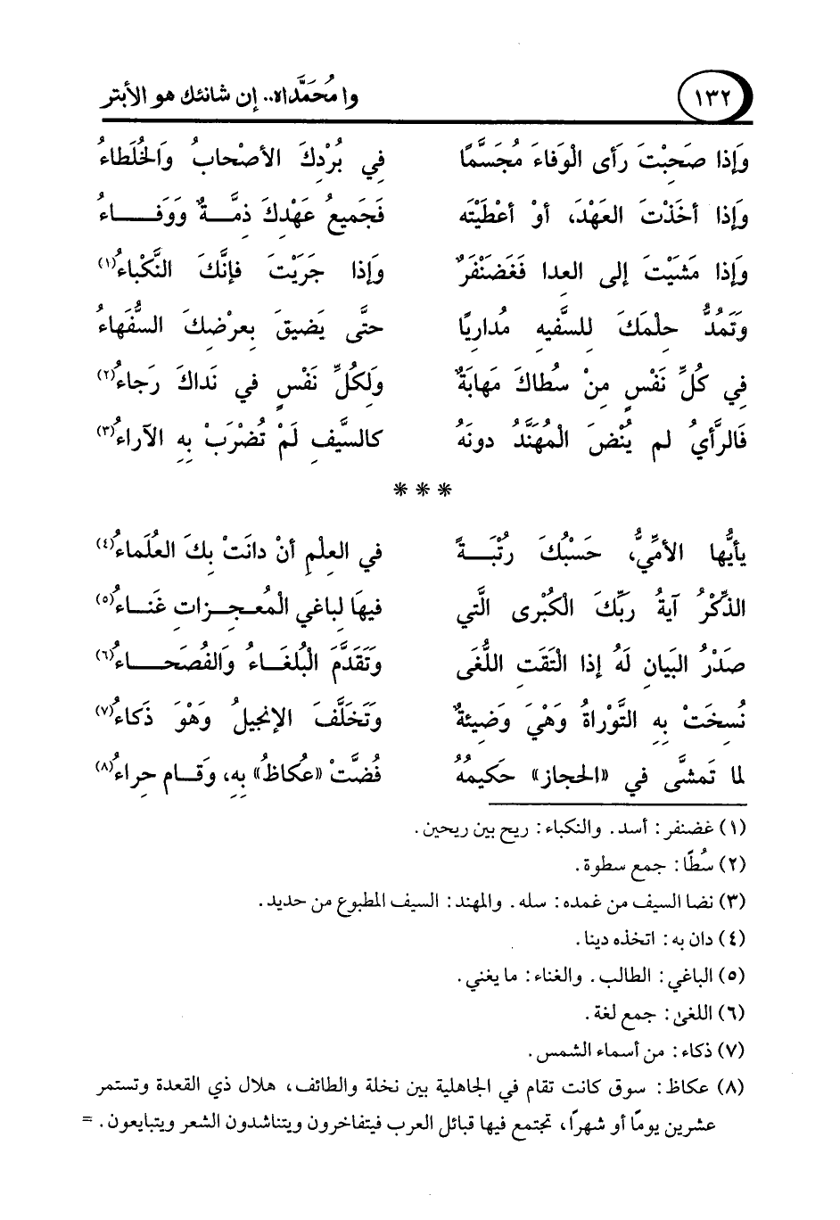 (¬8) عكاظ: سوق كانت تقام في الجاهلية بين نخلة والطائف، هلال ذي القعدة وتستمر عشرين يومًا أو شهرًا، تجتمع فيها قبائل العرب فيتفاخرون ويتناشدون الشعر ويتبايعون. =