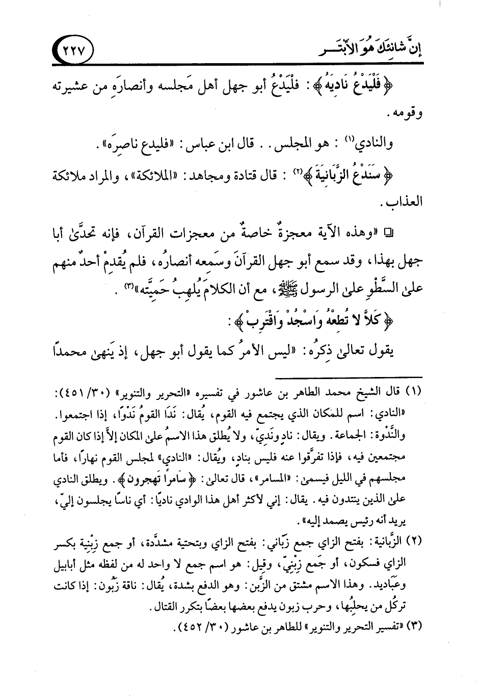 (¬3) "تفسير التحرير والتنوير" للطاهر بن عاشور (30/ 452).