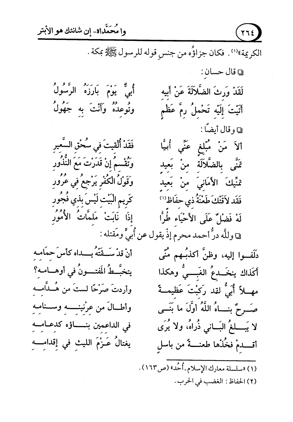 لَقَدْ وَرِثَ الضلاَلَةَ عَنْ أَبيه ... أُبيٌ يَوْمَ بَارَزَهُ الرسولُ