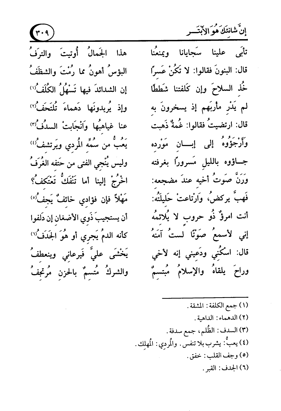 قال: البنونَ فقالوا: لا تَكُنْ عَسِرًا ... البؤسُ أهونُ مما رُمْتَ والشظَفُ