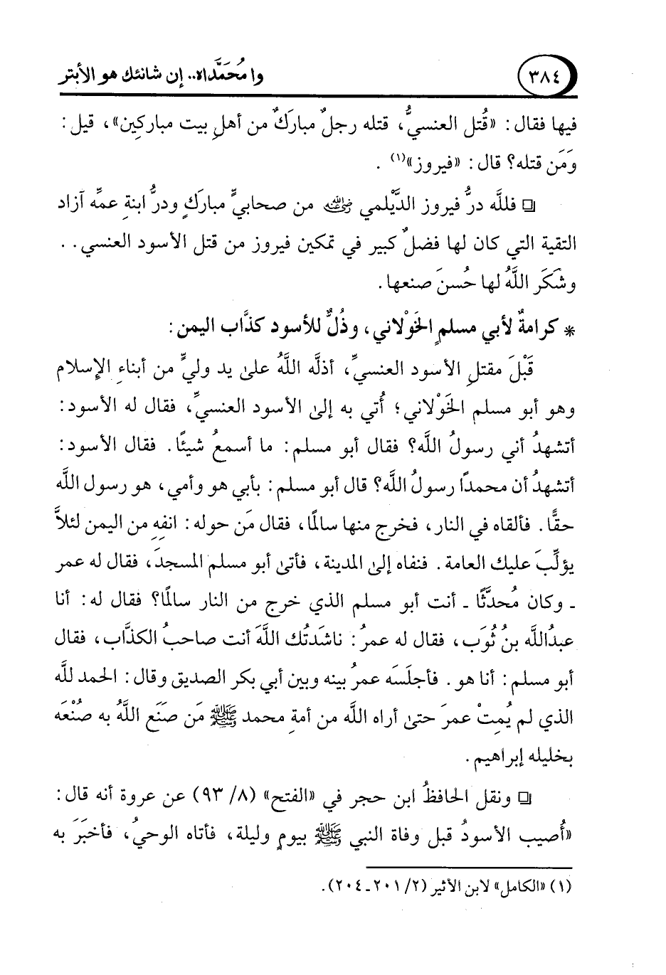 * كرامةٌ لأبي مسلمٍ الخَوْلاني، وذُلٌّ للأسود كذَّاب اليمن: