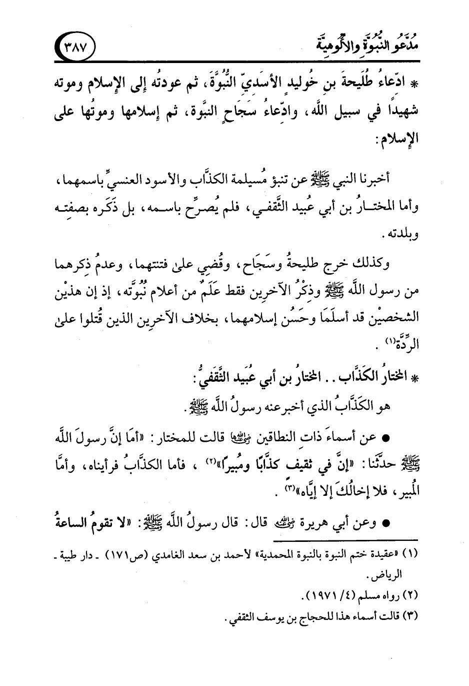 (¬1) "عقيدة ختم النبوة بالنبوة المحمدية" لأحمد بن سعد الغامدي (ص 171) - دار طيبة- الرياض.