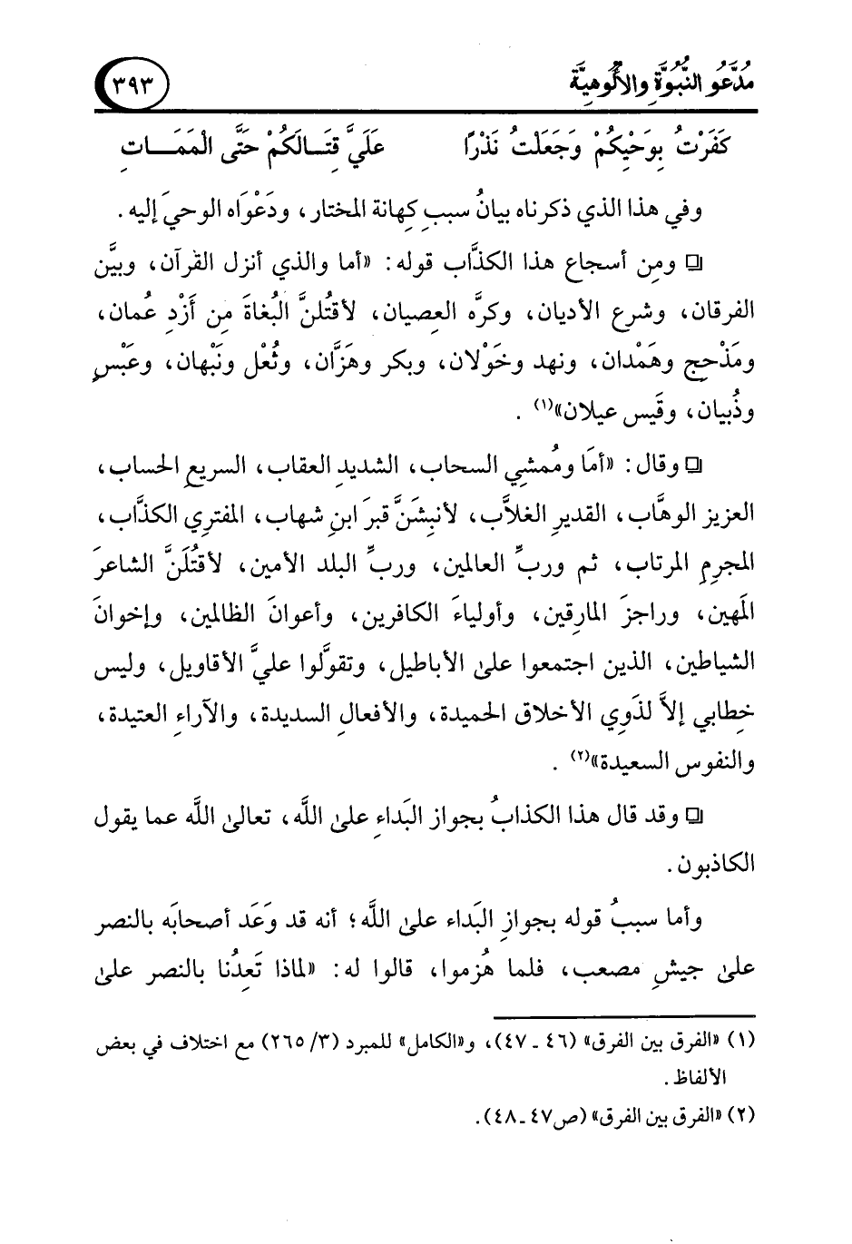 (¬1) "الفرق بين الفرق" (46 - 47)، و"الكامل" للمبرد (3/ 265) مع اختلاف في بعض الألفاظ.