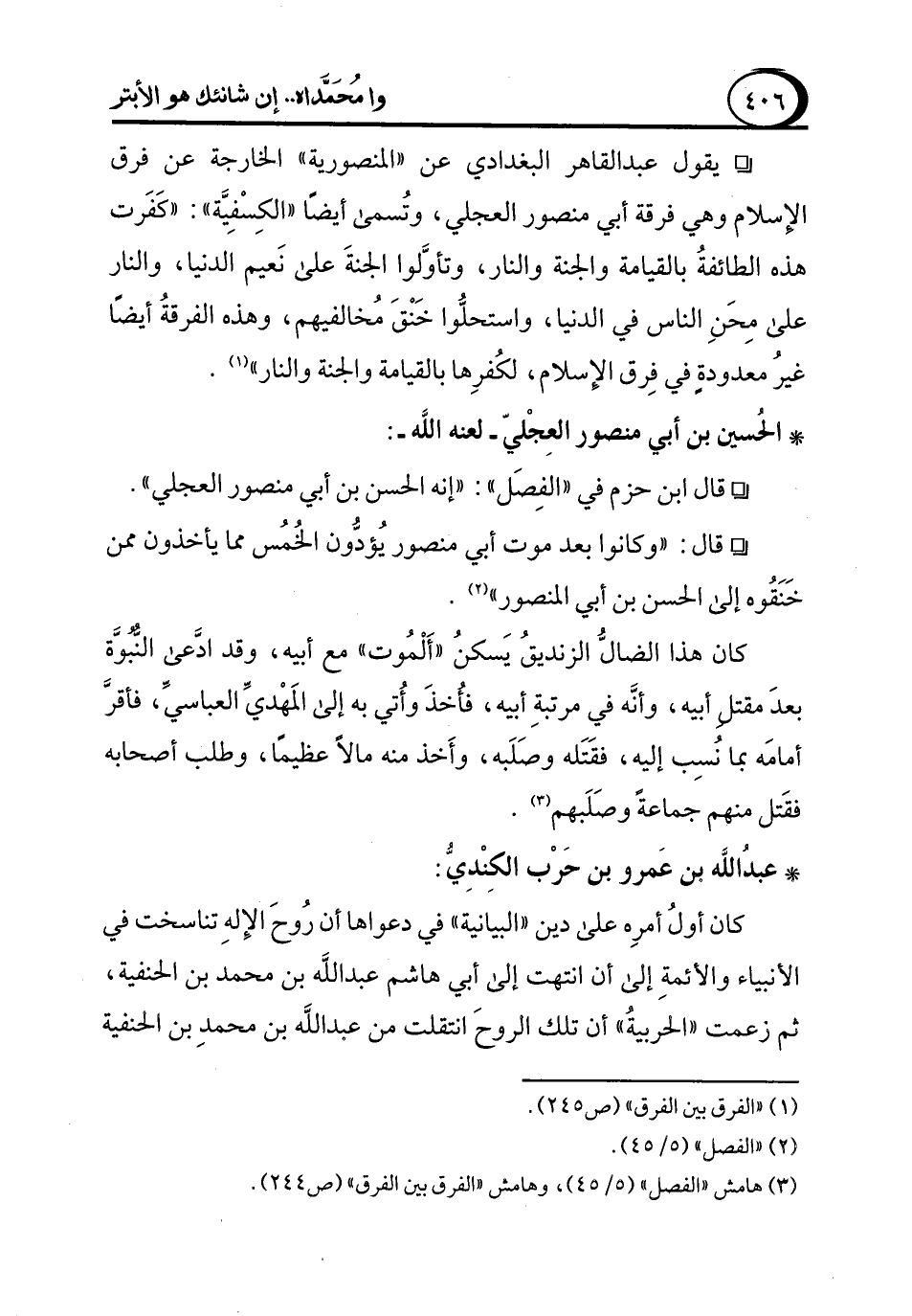 (¬3) هامش "الفصل" (5/ 45)، وهامش "الفرق بين الفرق" (ص 244).