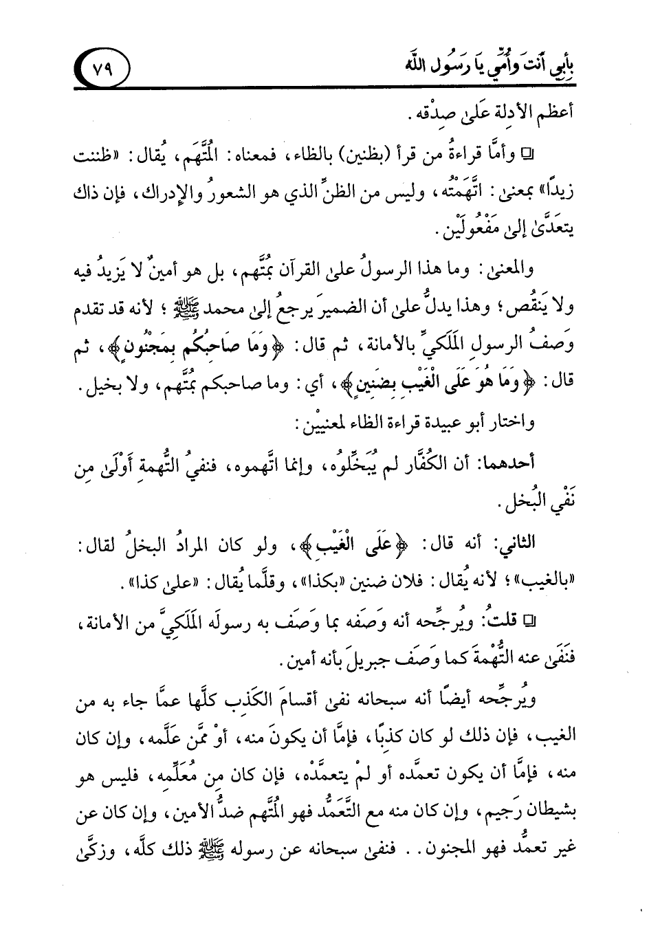 ° قلتُ: وُيرجِّحه أنه وَصَفه بما وَصَف به رسولَه المَلَكِي من الأمانة، فنَفَى عنه التُّهْمةَ كما وَصَف جبريلَ بأنه أمين.