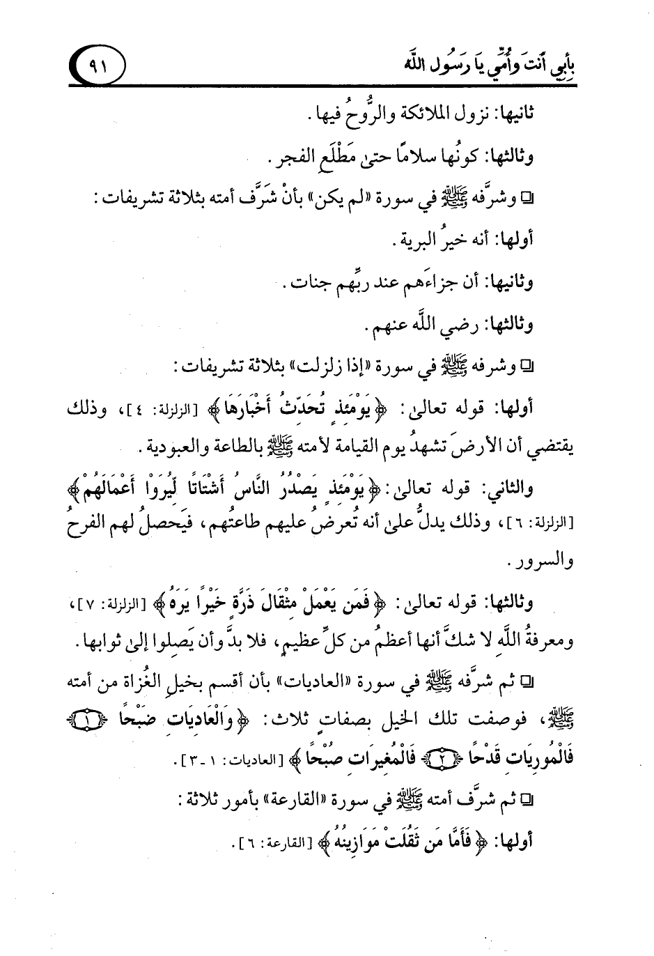 ° وشرفه - صلى الله عليه وسلم - في سورة "إذا زلزلت" بثلاثة تشريفات: