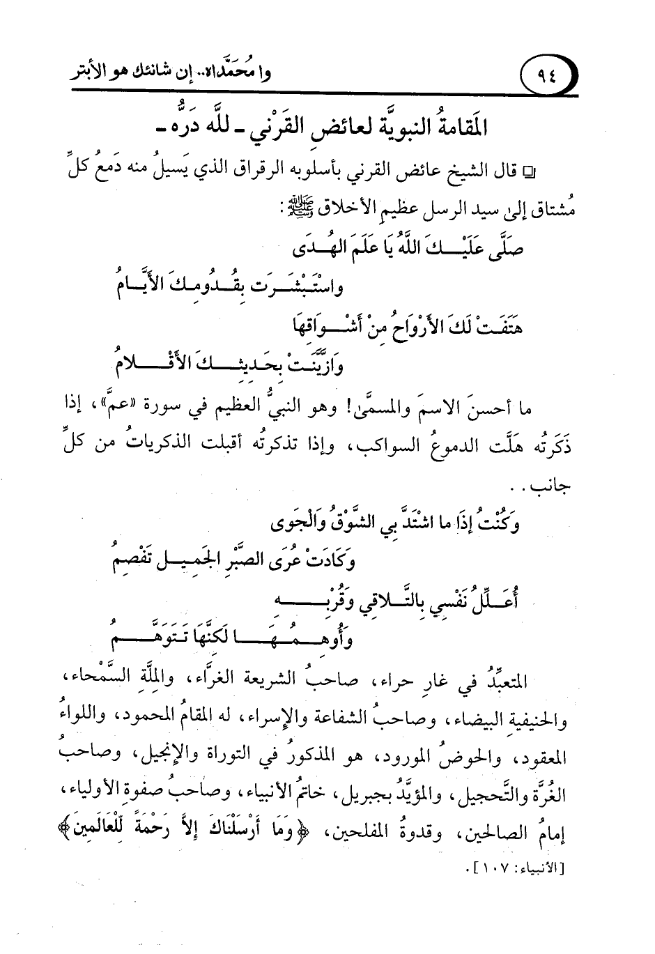 المَقامةُ النبويَّة لعائضِ القَرْني -لله دَرُّه-