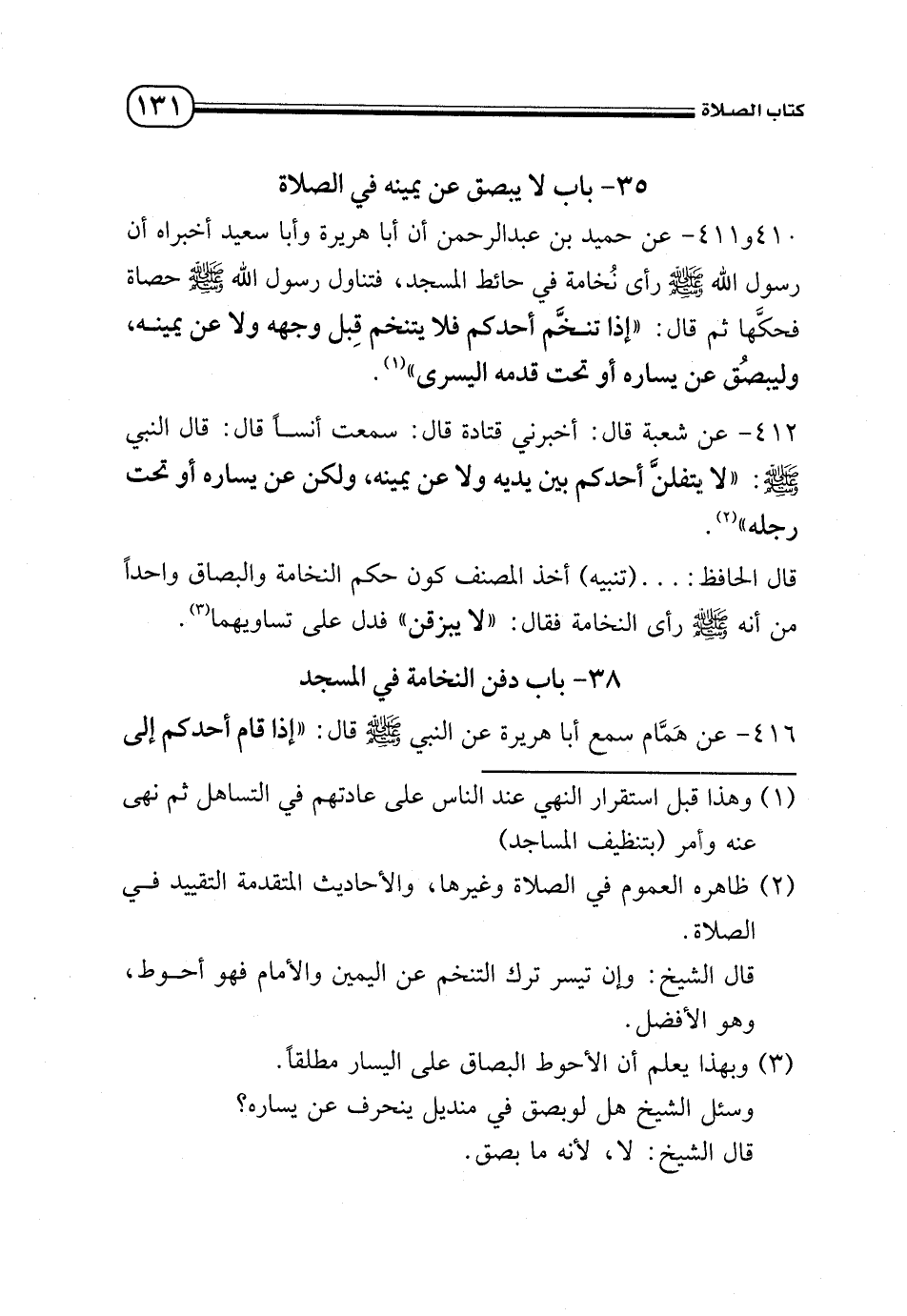 وسئل الشيخ هل لو بصق في منديل ينحرف عن يساره؟