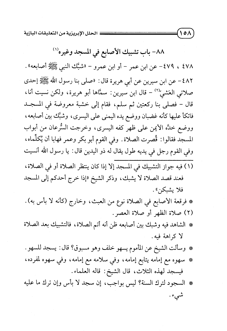 88 - باب تشبيك الأصابع في المسجد وغيره (¬1)