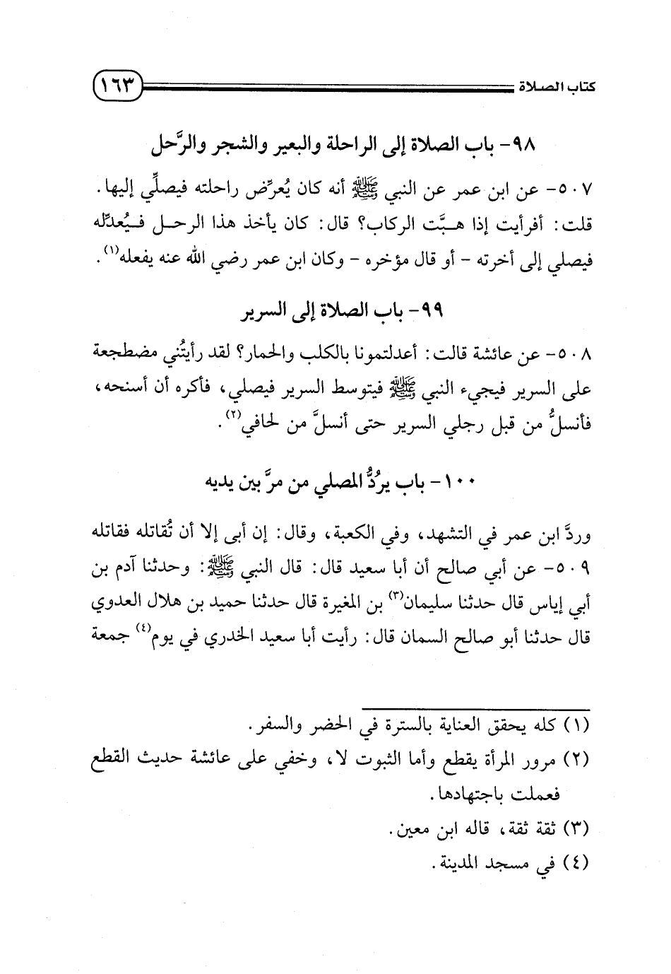 98 - باب الصلاة إلى الراحلة والبعير والشجر والرحل