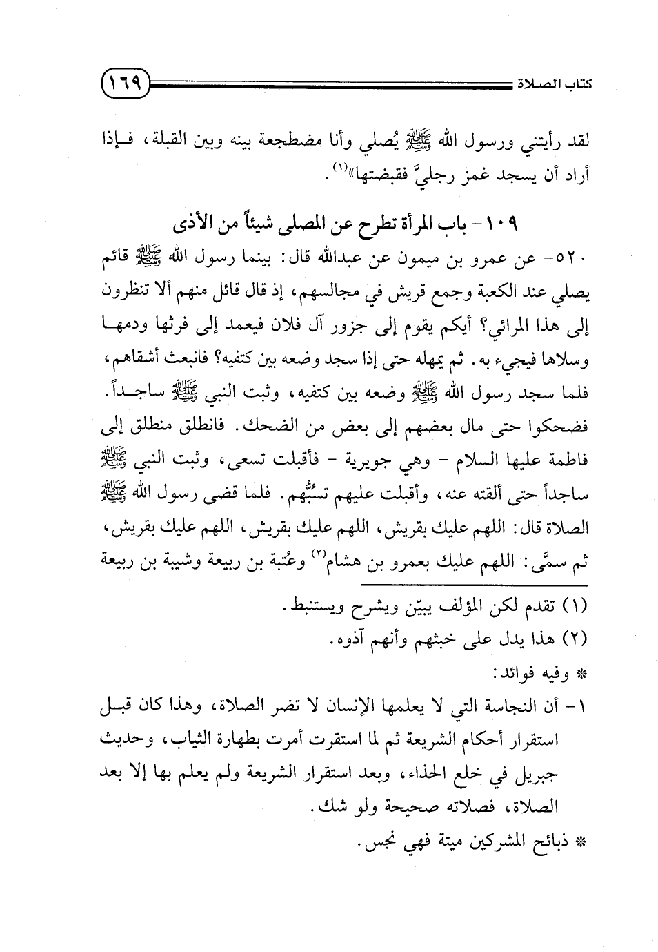 109 - باب المرأة تطرح عن المصلى شيئًا من الأذى