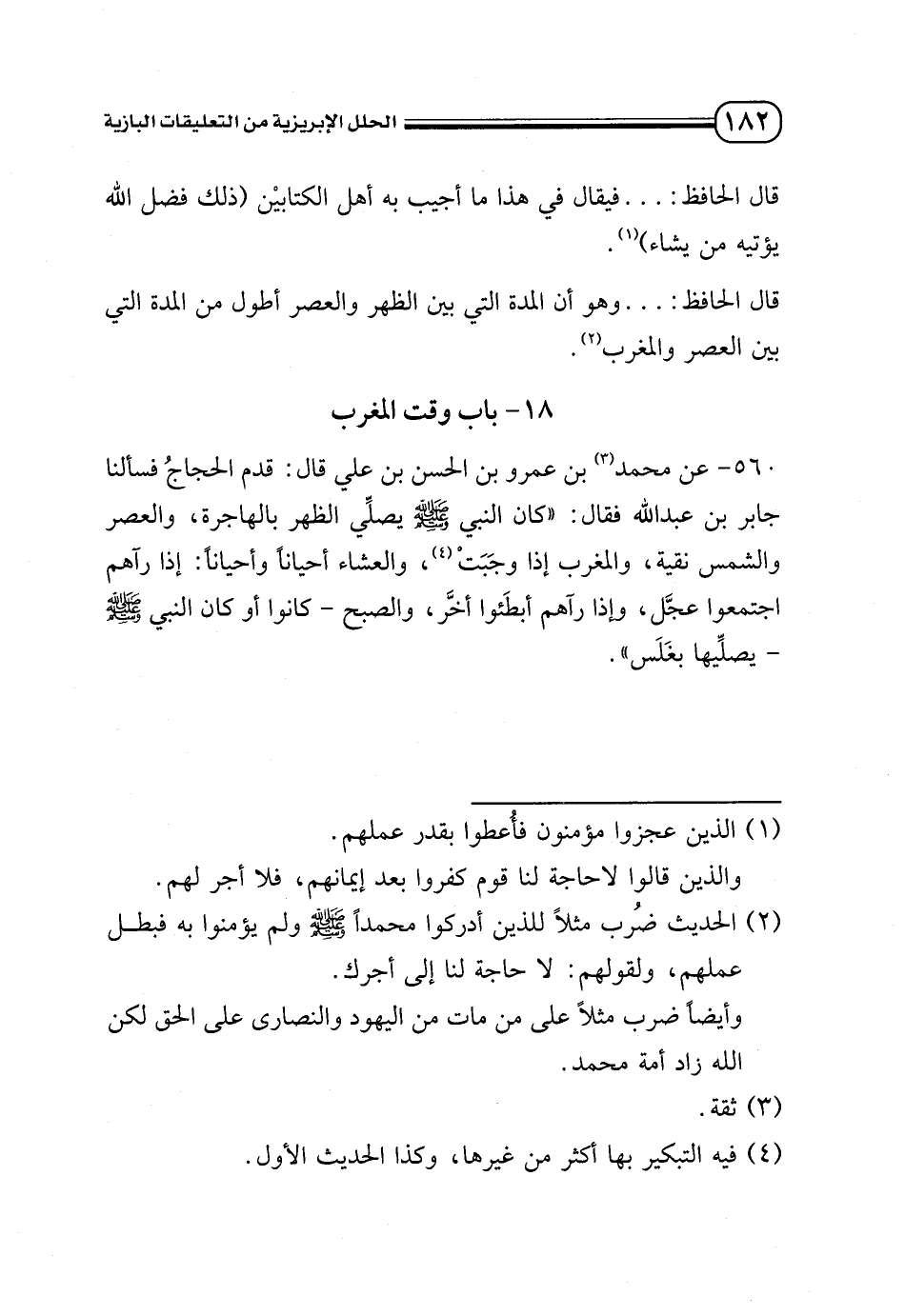 كتاب الحلل الإبريزية من التعليقات البازية على صحيح البخاري (اسم الجزء: 1)