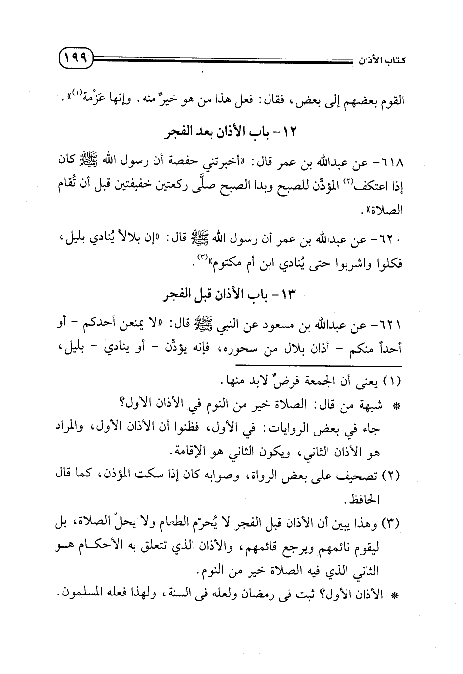 (¬3) وهذا يبين أن الأذان قبل الفجر لا يحرم الطعام ولا يحل الصلاة، بل ليقوم نائمهم ويرجع قائمهم، والأذان الذي تتعلق به الأحكام هو الثاني الذي فيه الصلاة خير من النوم.