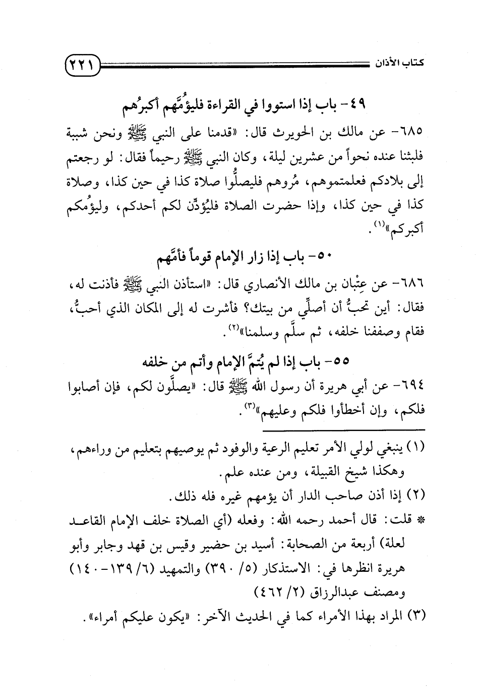 * قلت: قال أحمد - رحمه الله -: وفعله (أي الصلاة خلف الإمام القاعد لعلة) أربعة من الصحابة: أسيد بن حضير وقيس بن قهد وجابر وأبو هريرة انظرها في: الاستذكار (5/ 390) والتمهيد (6/ 139 - 140) ومصنف عبد الرزاق (2/ 462)