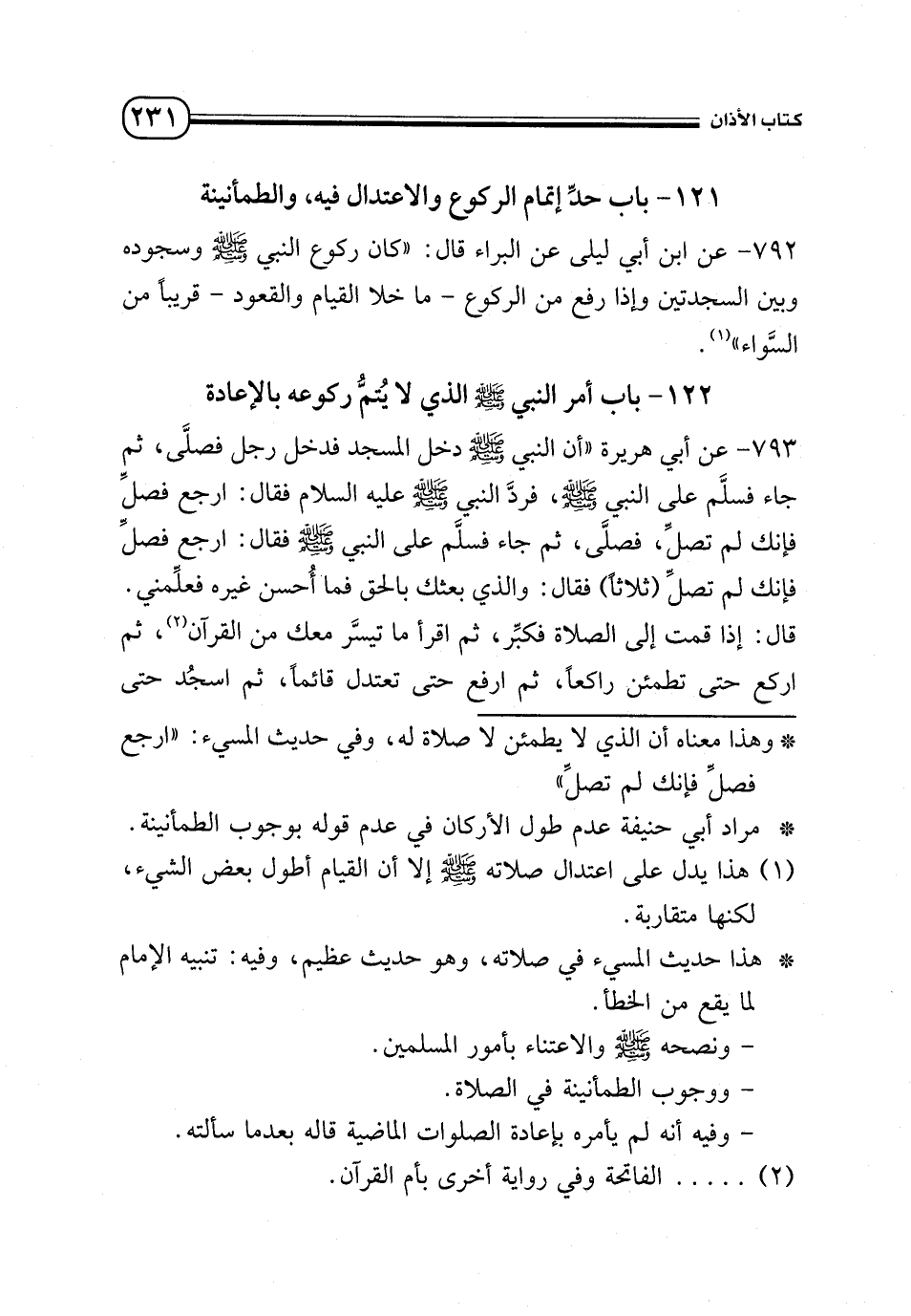 121 - باب حد إتمام الركوع والاعتدال فيه، والطمأنينة