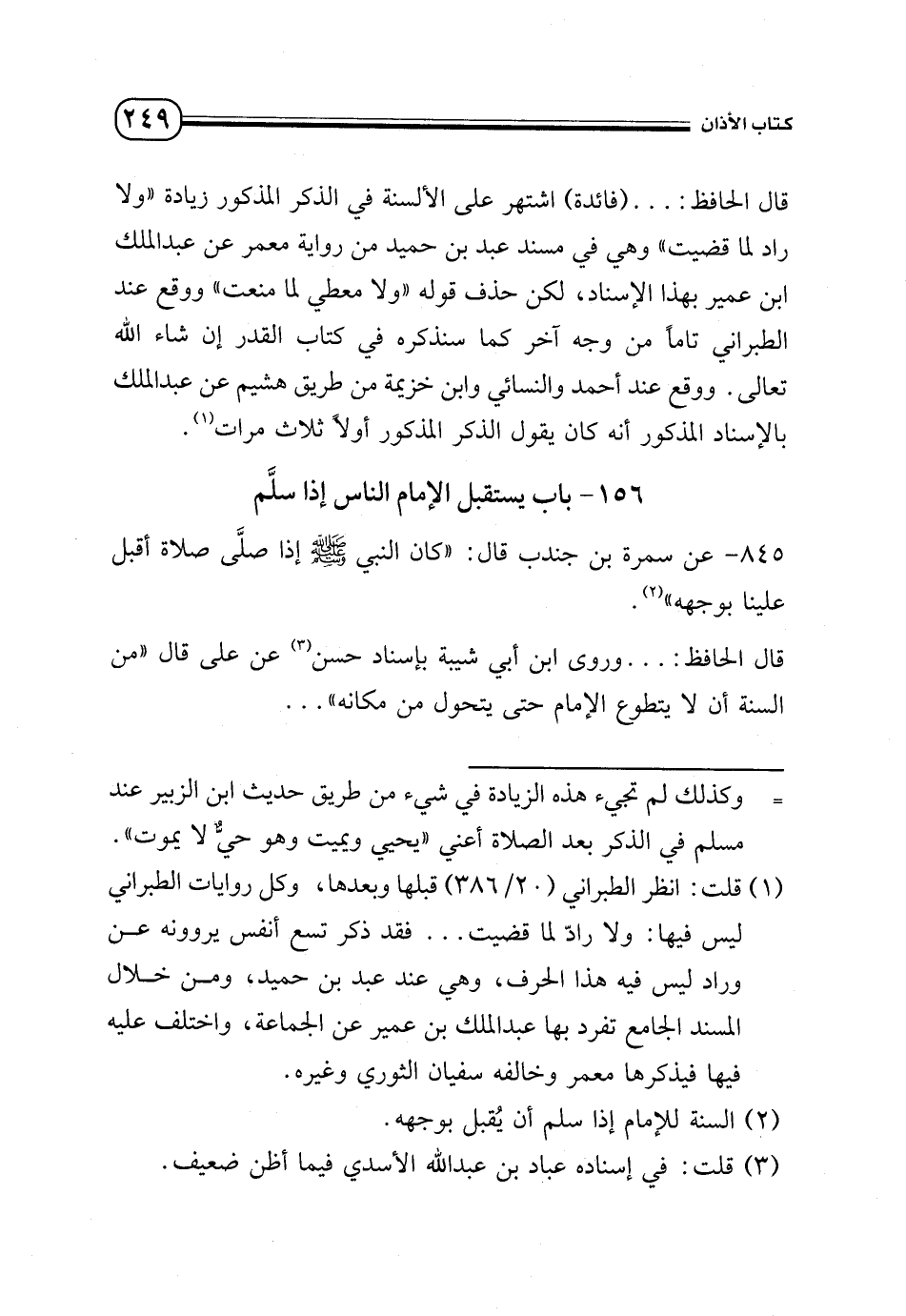 845 - عن سمرة بن جندب قال: «كان النبي - صلى الله عليه وسلم - إذا صلى صلاة أقبل علينا بوجهه» (¬2).