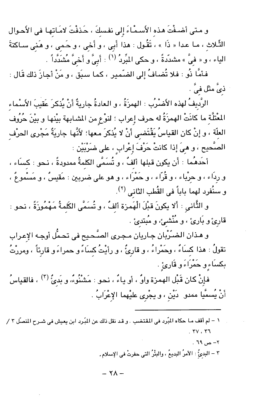 (¬1) - لم أقف ما حكاه المبّرد فى المقتضب. وقد نقل ذلك عن المبّرد ابن يعيش فى شرح المنصّل 3/ 36، 37.