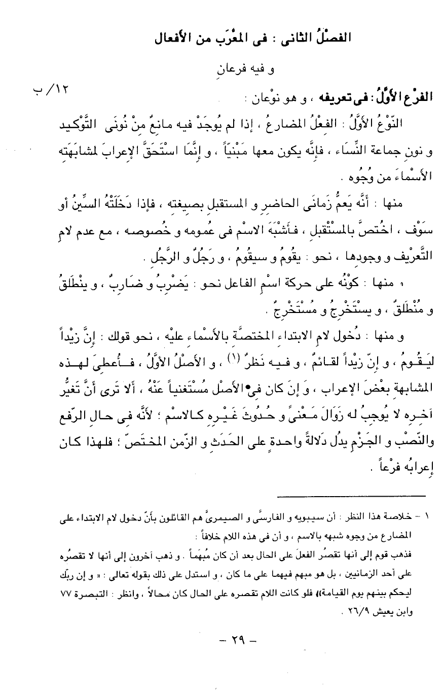 (¬1) - خلاصة هذا النظر: أن سيبويه والفارسىّ والصيمرىّ هم القائلون بأنّ دخول لام الابتداء على المضارع من وجوه شبهه بالاسم، وأن فى هذه اللام خلافا: