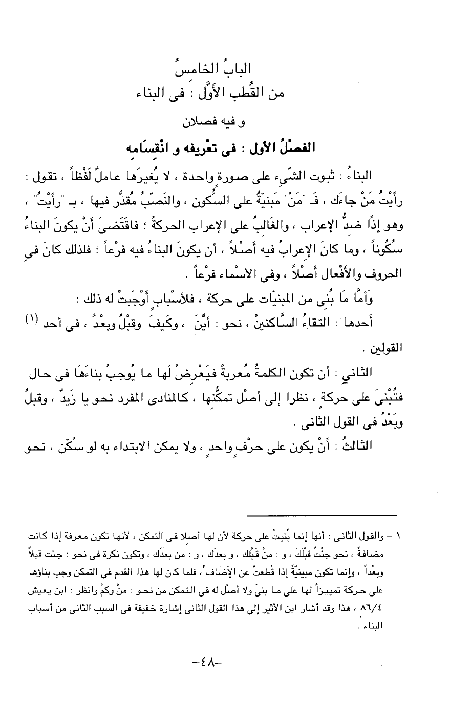 البناء: ثبوت الشّئ على صورة واحدة، لا يغيّرها عامل لفظا، تقول: