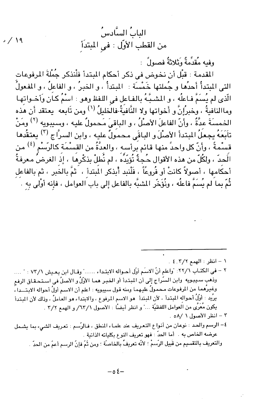 الباب السّادس من القطب الأوّل: فى المبتدأ