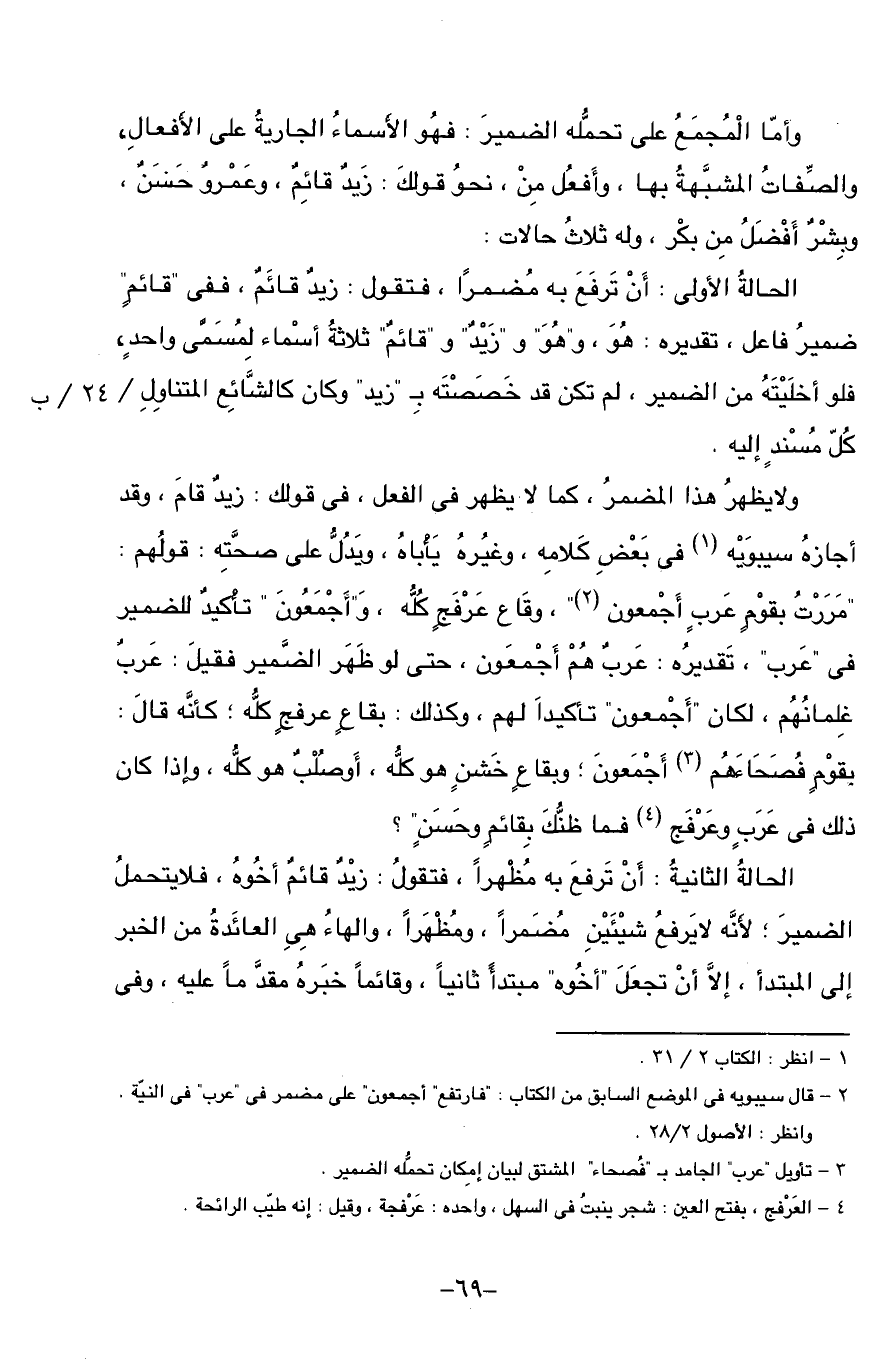 (¬3) - تأويل" عرب" الجامد ب" فصحاء" المشتق لبيان إمكان تحمّله الضمير.
