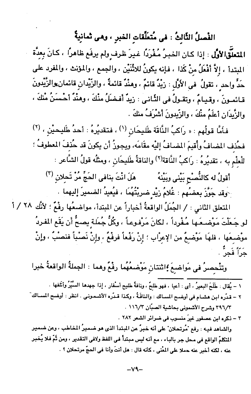 الفصل الثّالث: فى متعلّقات الخبر،