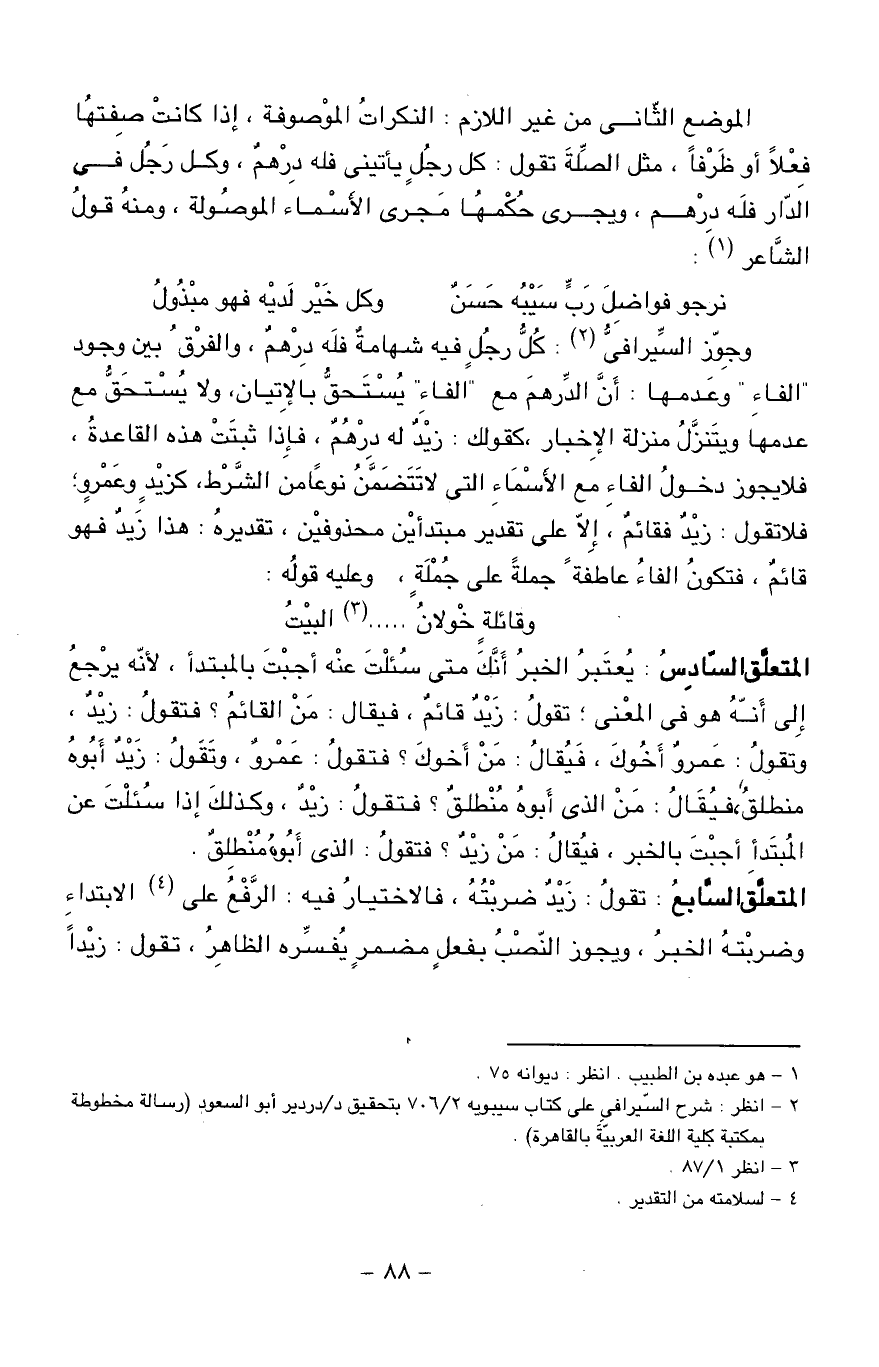 (¬2) - انظر: شرح السّيرافى على كتاب سيبويه 2/ 706 بتحقيق د/ دردير أبو السعود (رسالة مخطوطة بمكتبة كلية اللغة العربيّة بالقاهرة).